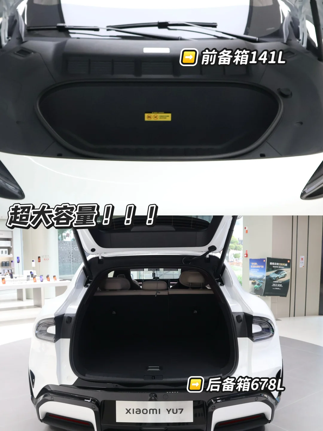 我很心水小米YU7的空间,首先是储物容积大,作为一个经常要扛着相机、三脚架出外拍的人,我直接被戳中,以后出门可以不用担心放不下了!后排空间也巨宽敞,随便葛优躺~座椅放倒后还秒变大床,以后外出拍摄累了或者午休时躺下歇一会想想都舒服,内饰摸起来也软软的,超棒