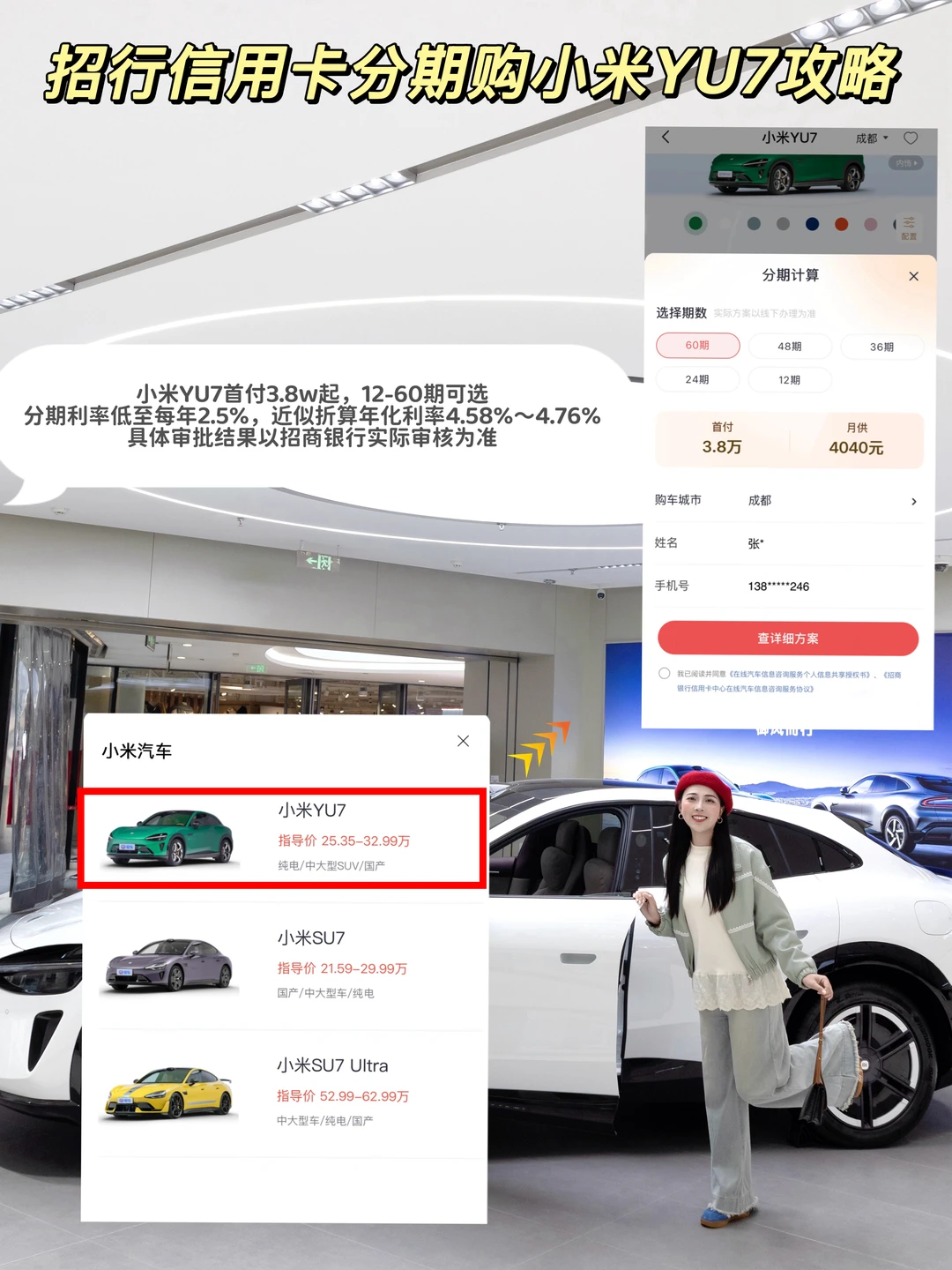 小米YU7落地价小米探店小米汽车新能源汽车排行探店招商银行分期购车买车贷款和全款哪个更划算