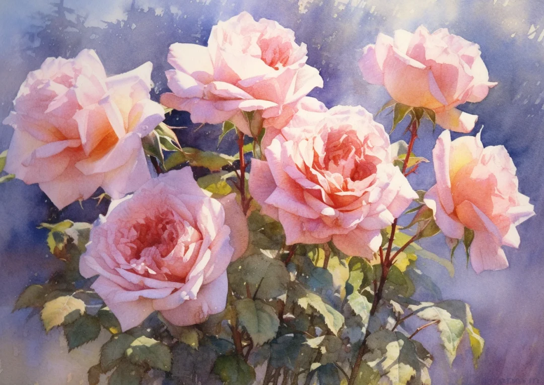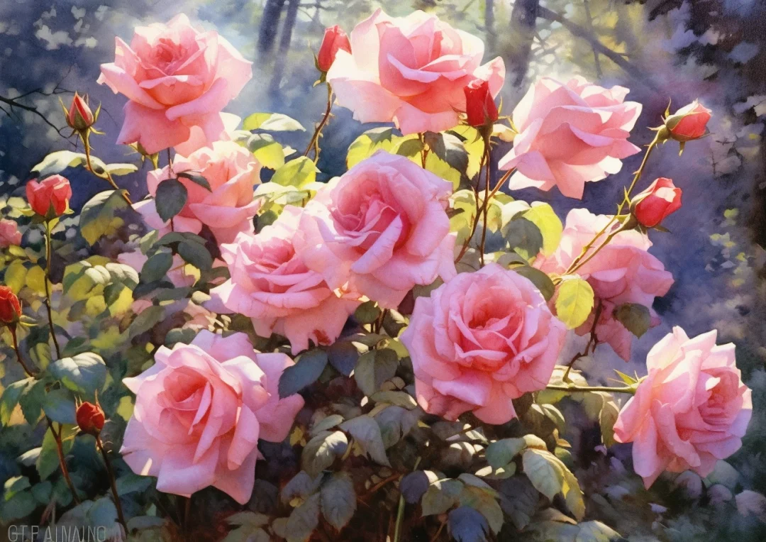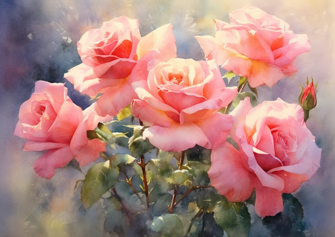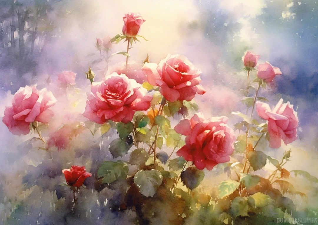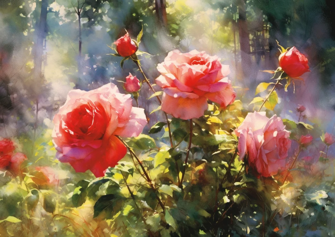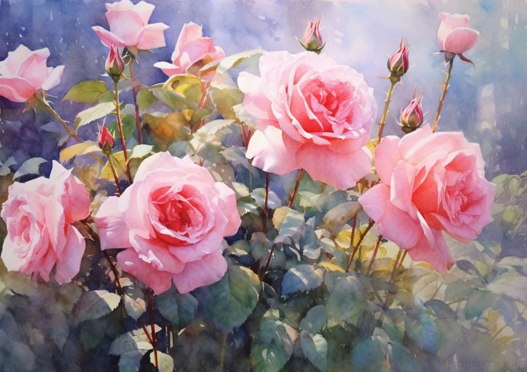 花卉 水彩花卉 水彩 midjourney AI 玫瑰 月季