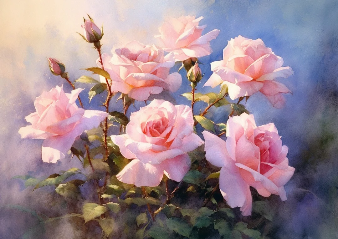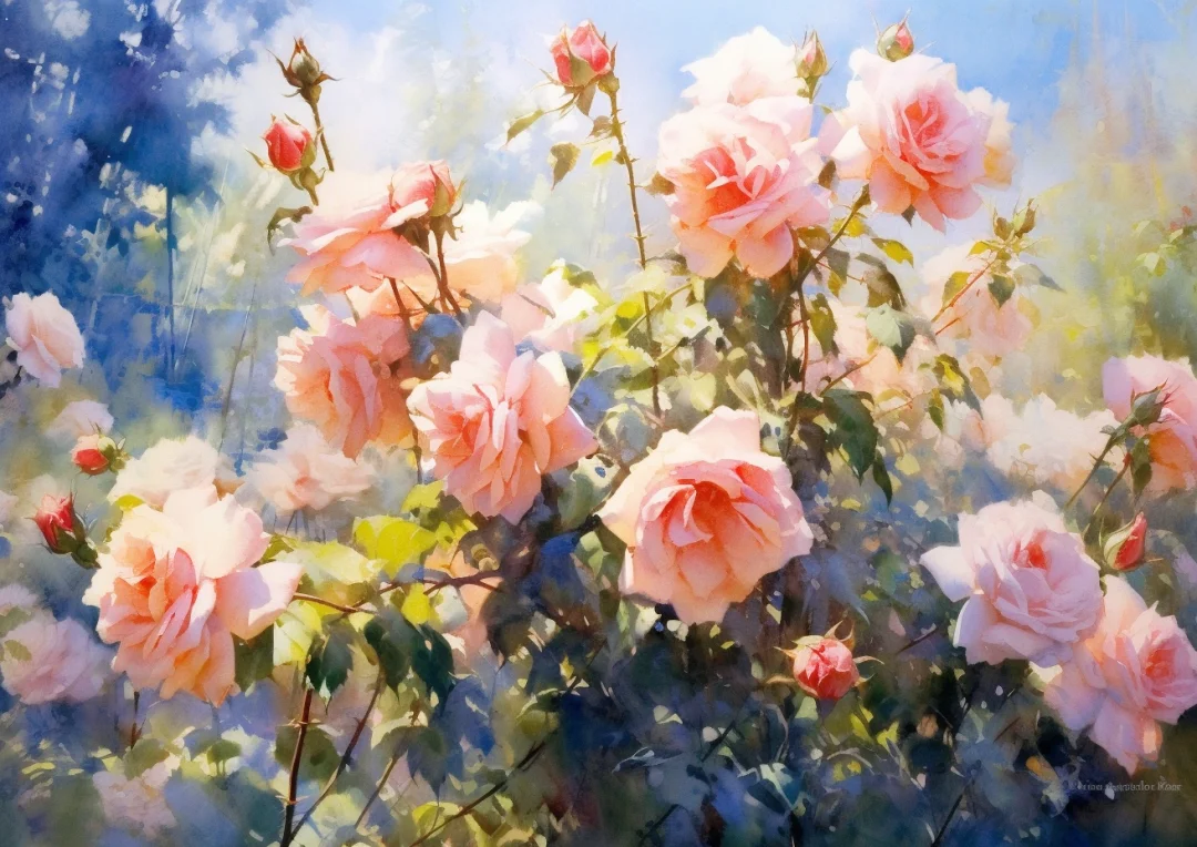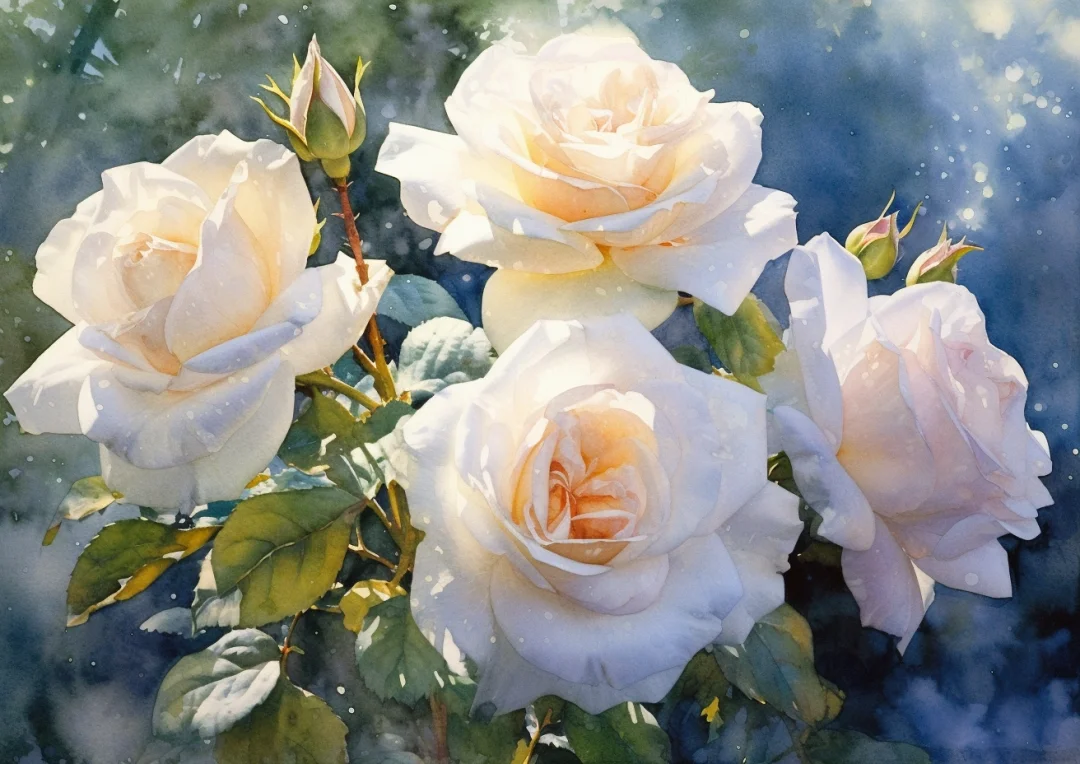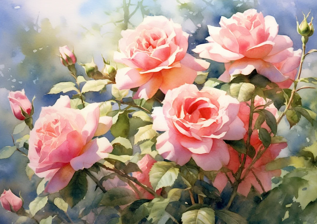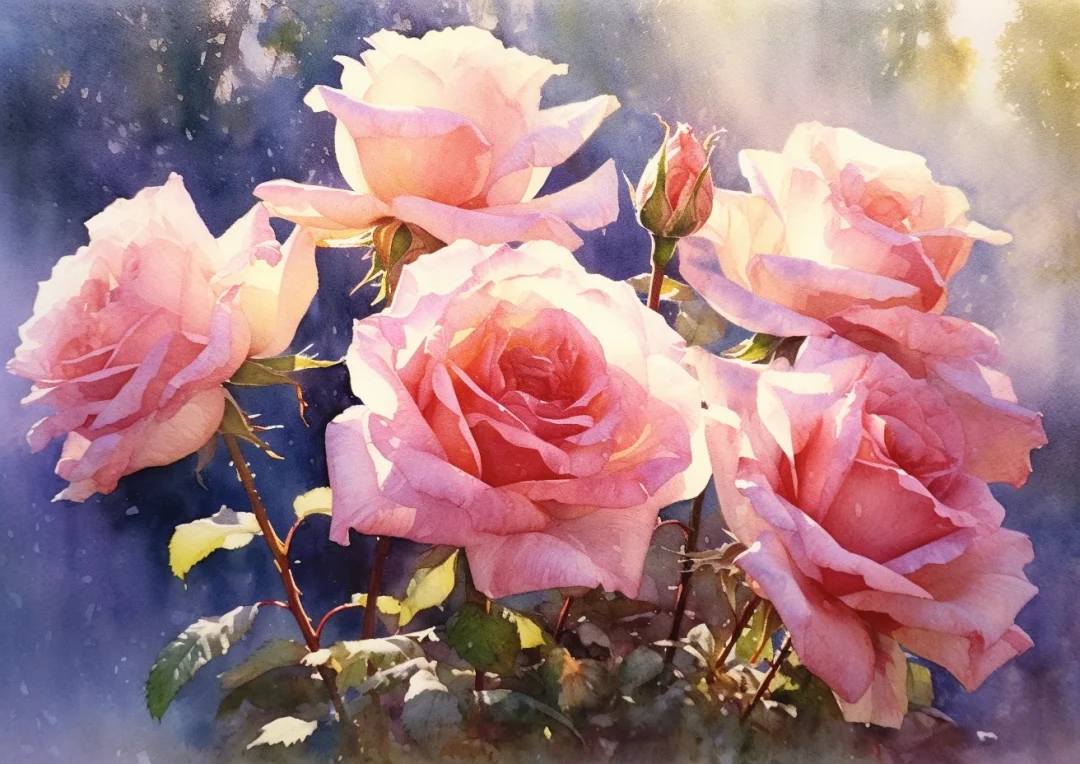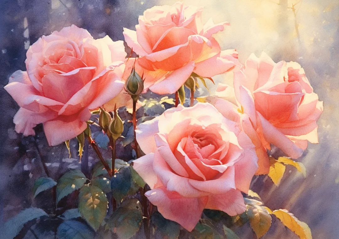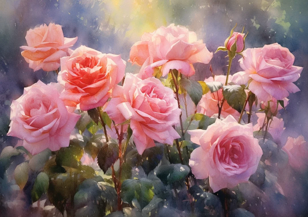 花卉 水彩花卉 水彩 midjourney AI 玫瑰 月季