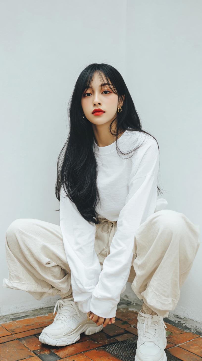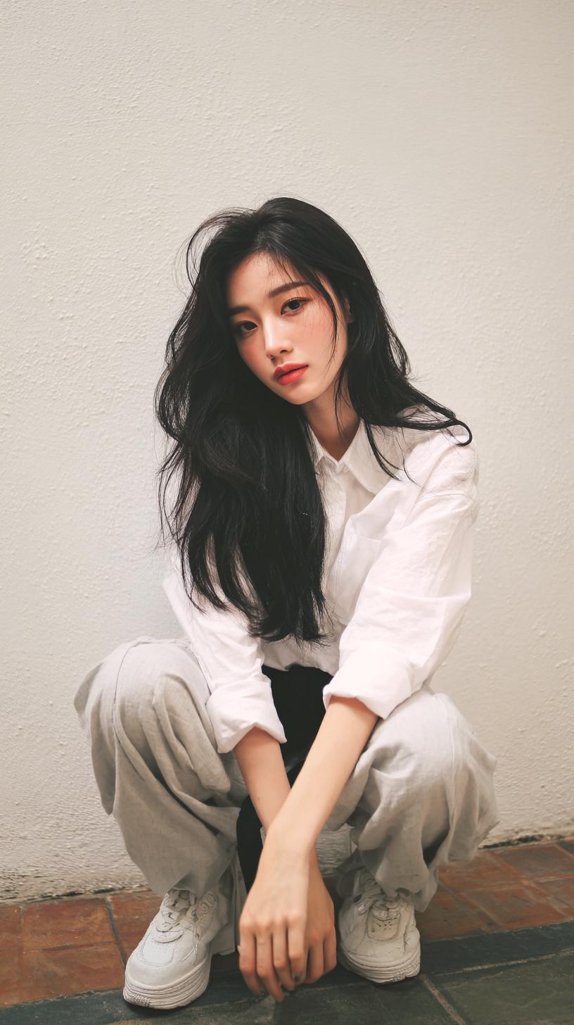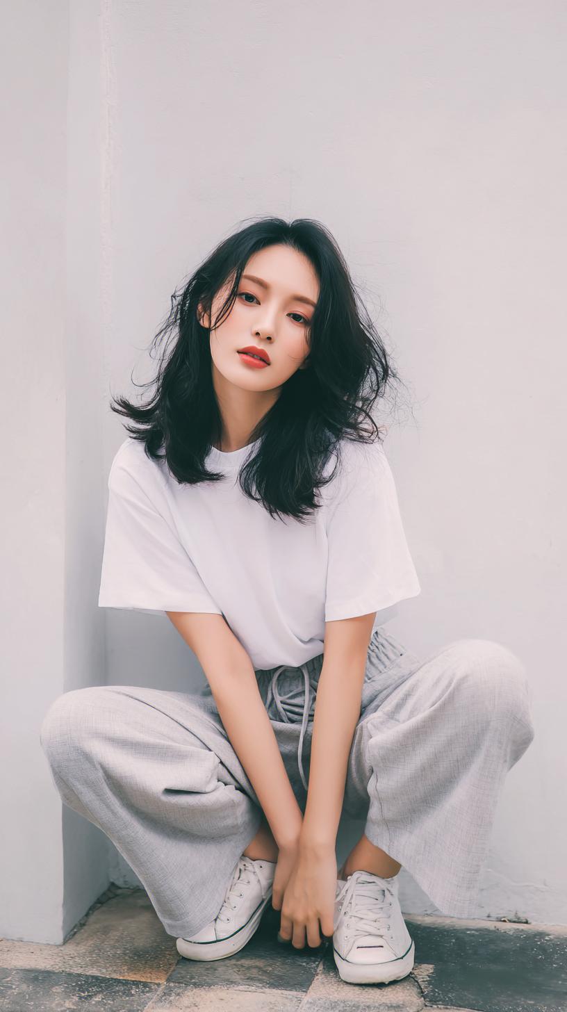 都市少女风穿搭,简约又不失时尚感,黑色运动鞋搭配灰色上衣和短裤,轻松自在。灰色短