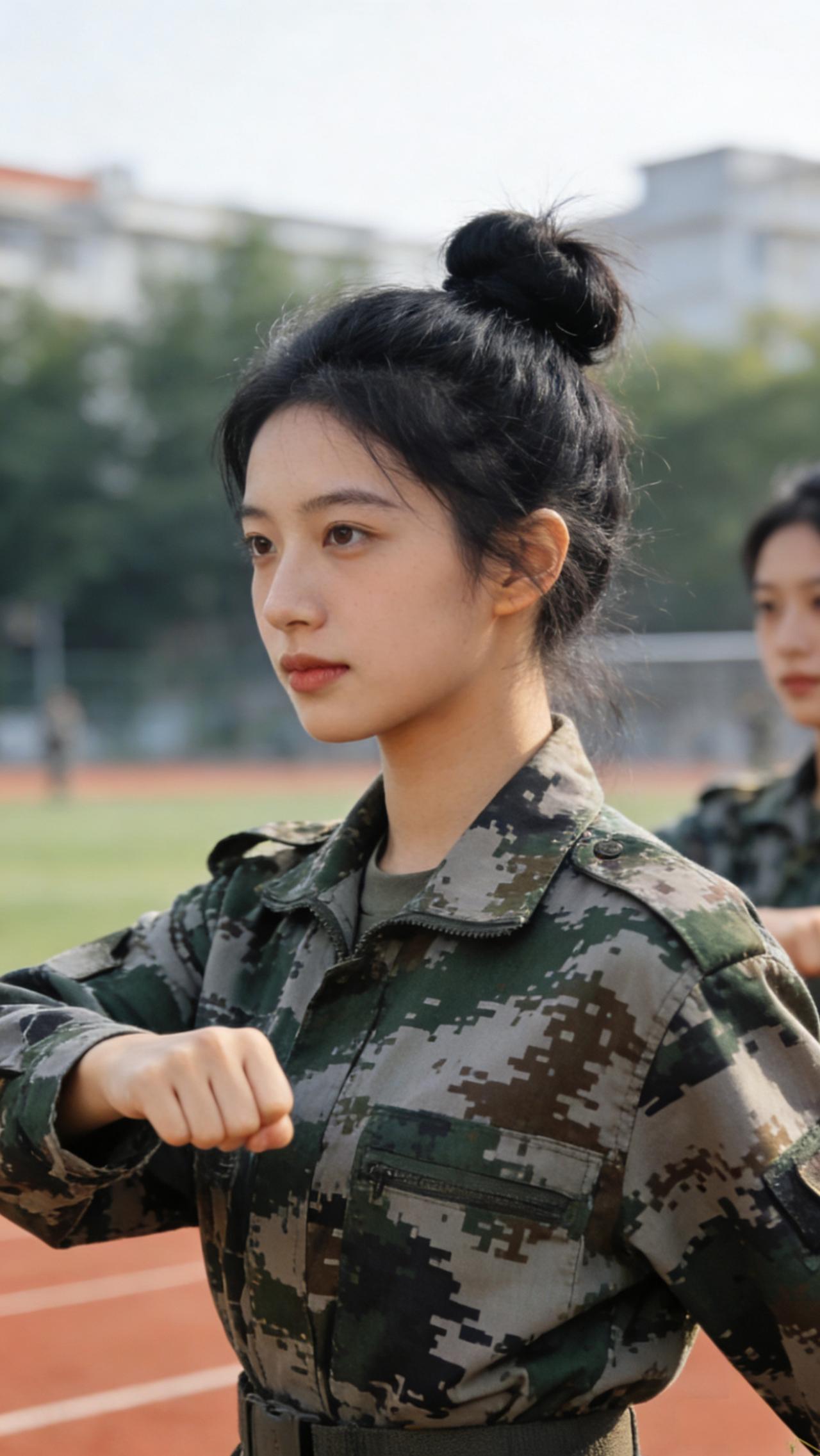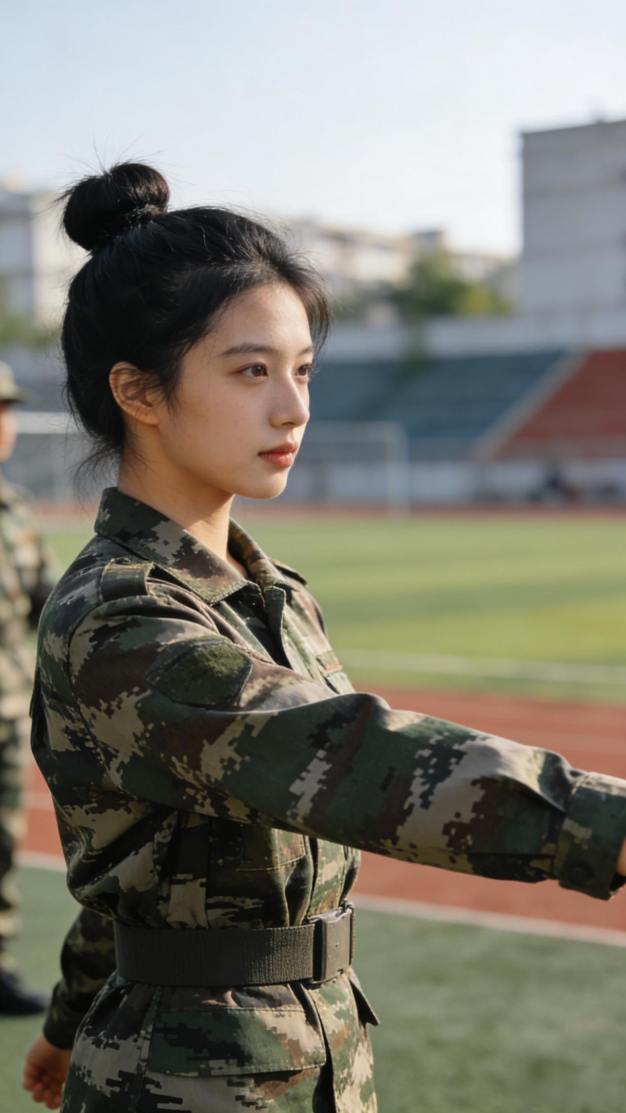 英姿飒爽的军装少女,绿茵场上尽显风采!当兵的女军女兵军中绿花军队女孩穿军装