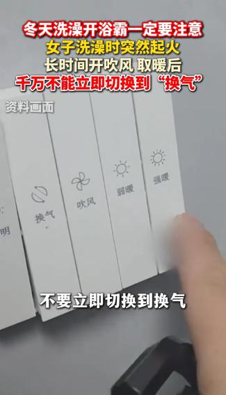 “悲剧还是发生了!”近日,安徽,一女子刚洗完澡,就把浴霸的“暖风”切换成了“换气”,结果还没出卫生间,浴霸就传来“砰”的一声闷响,随后火花如流星般飘落!吓得女子拔腿就跑。网友:洗澡的时候不是全都开着吗? 这位安徽的女士在吃过晚饭后,也和往常一样,只想用一场热水澡来洗去一天的疲惫。因为是冬天,卫生间里通常阴冷潮湿,她在进入淋浴间之前,习惯性地提前开启了浴霸的暖风模式。这一步做得无可厚非,随着室内温度逐渐攀升,狭小的空间里充满了暖意,她便安心地进去洗漱。如果故事只停留在这一刻,那依然是一个温馨的夜晚,但危险往往就藏在最顺手的那个动作里。 洗漱完毕后,这位女士并没有多想,她只想尽快排掉浴室里弥漫的水汽,于是站在门口,随手将开关从“暖风”档位直接拨到了“换气”档位。 就在手指刚刚离开开关的瞬间,灾难降临了。没有丝毫预兆,头顶的浴霸突然发出沉闷而剧烈的“砰”一声巨响,紧接着,并没有风排出来,反而窜出了明火。 这种突如其来的变故,足以让任何人在那一瞬间大脑空白。所幸,这位女士虽然受到了极大的惊吓,甚至被吓得拔腿就往外跑,但她在冲出卫生间到达客厅的安全地带后,迅速强迫自己冷静了下来。她意识到如果不切断源头,后果不堪设想。 于是她果断地冲向家里的配电箱,拉下了总电闸。确认断电后,她才敢拿起家里的灭火工具,返回去处理还在燃烧的残骸。正是因为这一连串堪称教科书式的应急反应,火势被迅速压制,除了一部分吊顶被熏黑烧坏、那个惹祸的浴霸彻底报废之外,万幸没有造成人员受伤。 事后当维修师傅上门对着这一片狼藉进行检查时,给出的结论却让很多人听完后背后发凉——这并不是因为设备老化或者质量低劣,纯粹是“操作太快了”。这其实是一个涉及电机物理特性的常识盲区。根据专业师傅的深度解析,我们现在家庭里安装的多数风暖型浴霸,其内部构造决定了暖风和换气这两个看似独立的功能,实际上往往共用同一个电机核心。 其中的运作逻辑并不复杂:当电机正向旋转时,它负责吹出暖风;而当电机反向旋转时,它就承担起抽风换气的工作。这就好比一辆正在高速公路上全速飞驰的汽车,那个正在高速运转的电机有着巨大的惯性。 当我们从“暖风”模式直接零停顿地切换到“换气”模式时,就好比强行让这辆飞驰的汽车在不踩刹车的情况下瞬间挂入倒挡。电机内部不仅要承受巨大的机械冲击,还要面对瞬间逆转电流带来的极高负荷。 也就是师傅口中的“强制反向急刹”,这种粗暴的指令冲突,极易导致电机内部的线路无法承受而瞬间短路,短路产生的高温火花引燃了周围的塑料部件,那声“砰”的闷响和随之而来的火光便是由于这种由于错误指令引发的物理悲剧。 很多人看着这个解释或许会恍然大悟:“原来网友们质疑的‘洗澡时不是全都开着吗’也是误解。”实际上,各个功能并不是简单的叠加,尤其是涉及到电机转向的功能。 师傅特别指出,在长时间使用暖风后,电机本身就已经处于高热和高速运转状态,这时候如果想换气,最安全的做法是先把开关拨回到“关闭”或者“停止”档位,让机器稍微“喘口气”,等到电机完全停止转动,稍微冷却片刻后,再开启换气模式。 这起发生在安徽的意外,像一记警钟,敲醒了无数在这个冬天贪图方便的人。在这个电器负荷原本就大的季节,尤其是浴室这种潮湿且环境复杂的空间,用电安全从来都不是儿戏。 每一台机器都有它的运行逻辑和极限,我们习以为常的“随手一拨”,在机器内部可能就是一场剧烈的生死博弈。无论是浴霸、电热水器还是小太阳,严格遵循说明书上的操作规范,不仅是为了保护电器,更是为了保护我们自己。 同时,这位女士在面对火情时的冷静处置也值得所有家庭学习:面对电器起火,逃生是本能,但切断电源是关键。绝不能在未断电的情况下盲目泼水救火,那样只会引发更严重的触电事故。当火花熄灭,生活回归平静,我们在享受科技带来的温暖时,也请多留一份心眼,别让温暖的源头变成悬在头顶的“定时炸弹”。