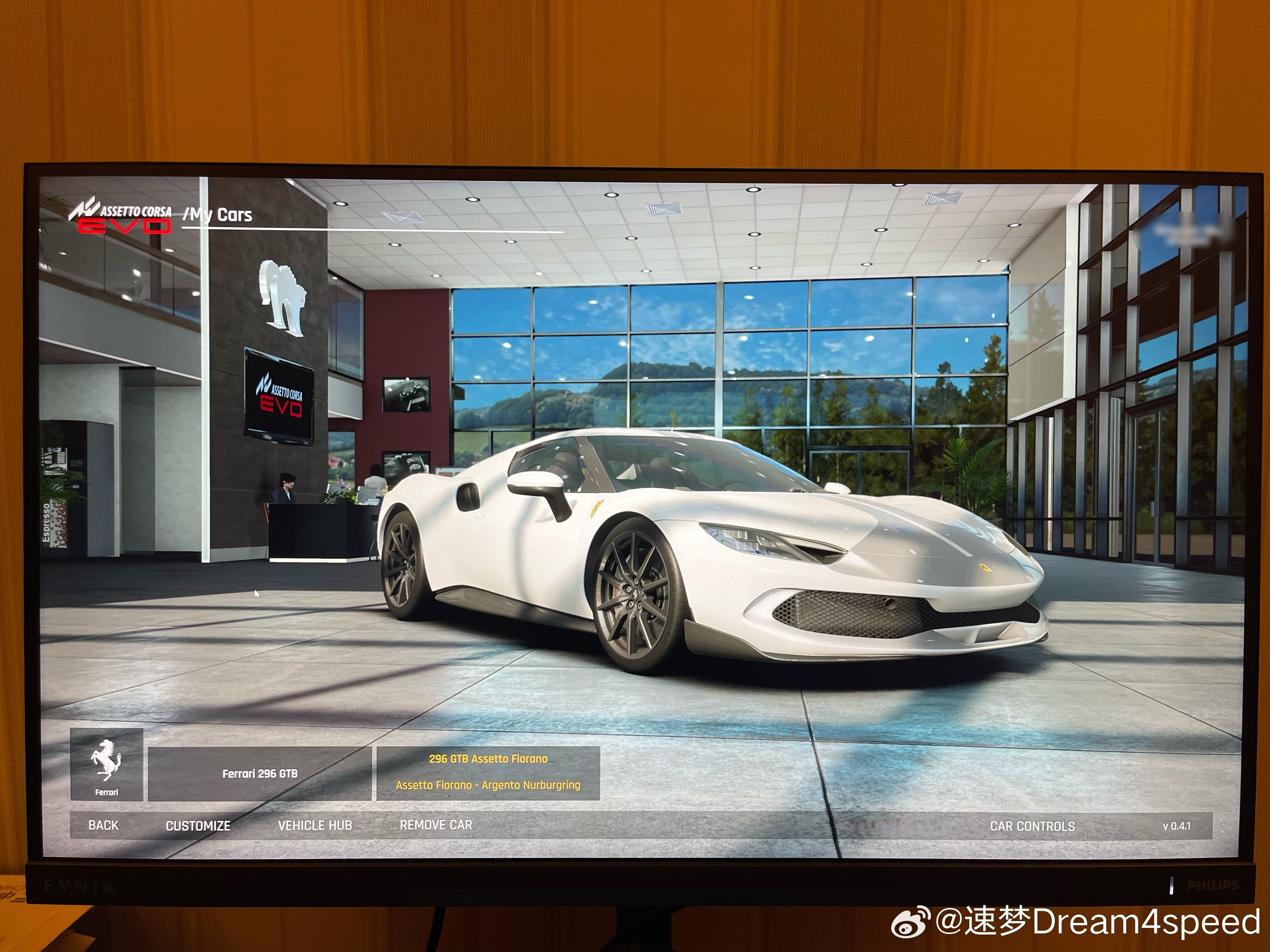 神力科莎Evo 0.4还可以啊,第一天体验,很接近真车感觉了,只要找到正确的设置,第一次玩到官模4RS和296,质量比AC Mod高很多,太喜欢296了,真车Monza Potenza Sport胎就能1分54,992 3RS MR配Cup2R或TRS才1分53… 我估计我上赛可以把296 Fiorano开到2分06左右,这车就是现在超跑界的扛把子,都不需要Speciale和849TR,除了C8 ZR1这种顶配蛮力怪才能虐之,或者Hyper。
