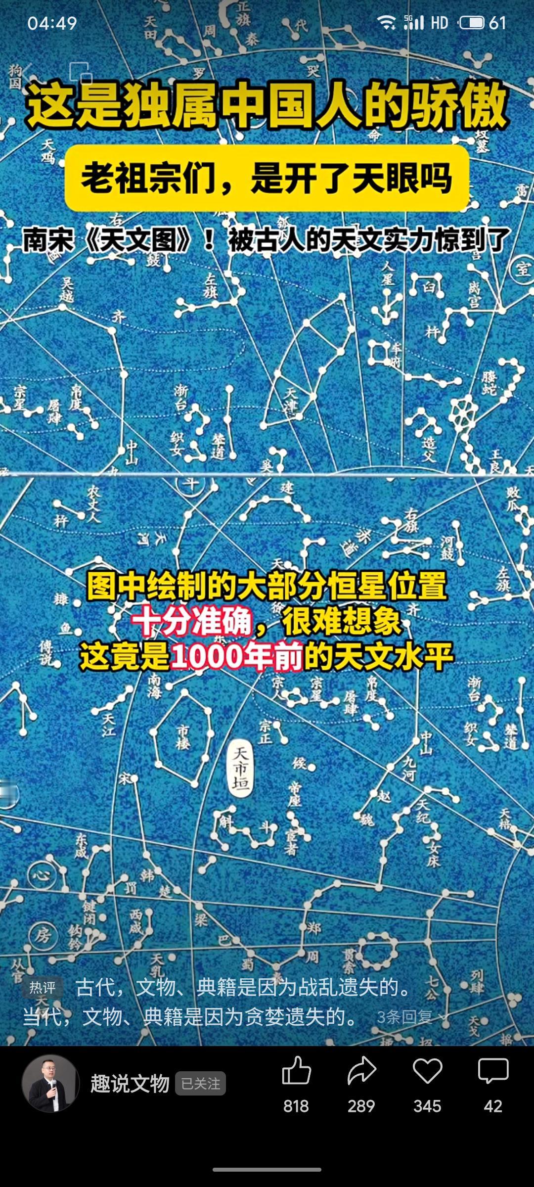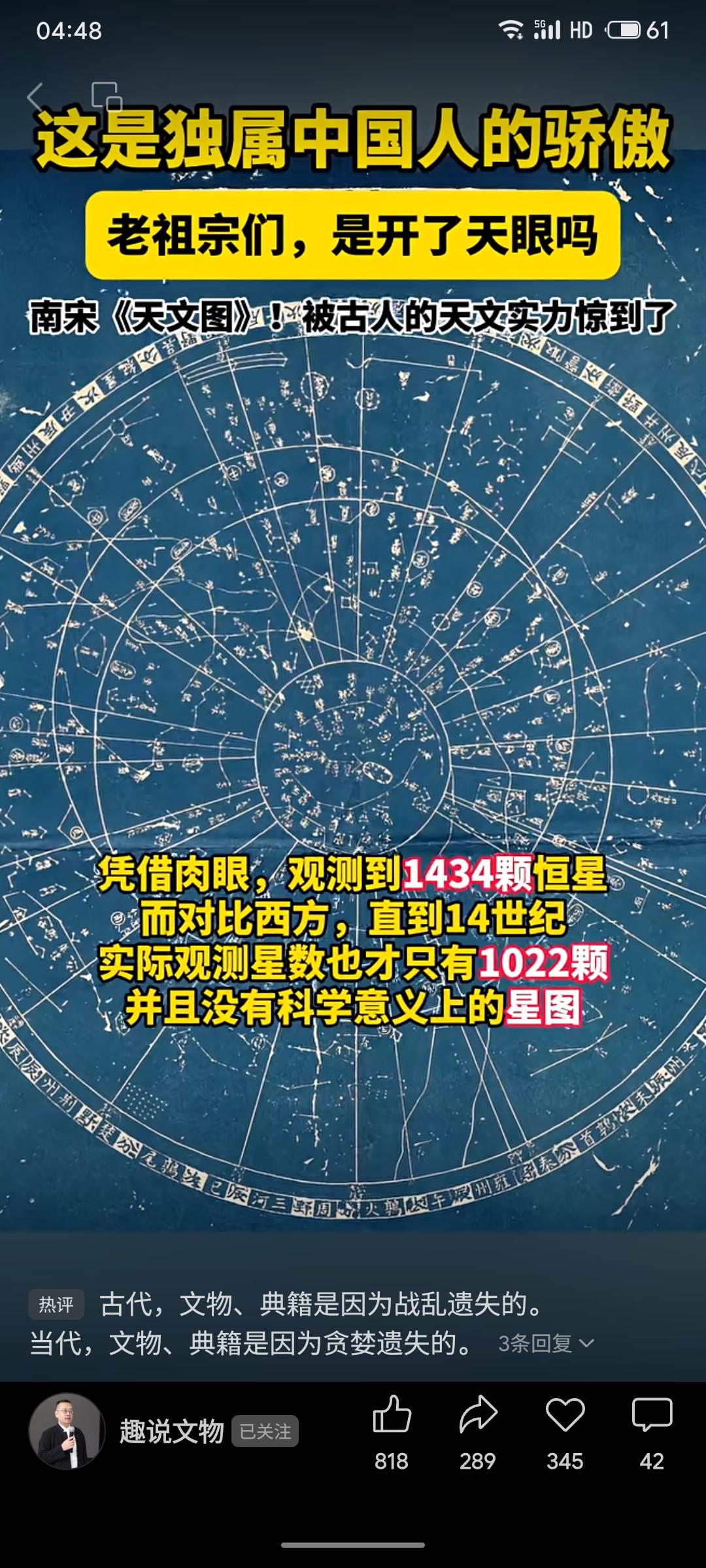 南宋《天文图》碑现存苏州,基于北宋实测数据绘制,记载1434颗恒星,数量远超同期西方星图。由黄裳为皇太子编绘,后刻碑留存,是世界现存最早、星数最多的石刻实测星图,展现了中国古代天文学的卓越成就。