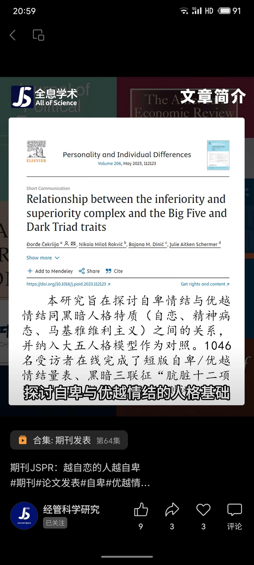研究通过1046份问卷发现,自卑与优越情绪与大五人格(神经质、责任心等)关联更紧密,而黑暗三联征中仅自恋与两者均正相关。研究挑战了“黑暗特质主导情绪”的预设,但未来仍需更完整的人格量表以验证结论的稳健性。
