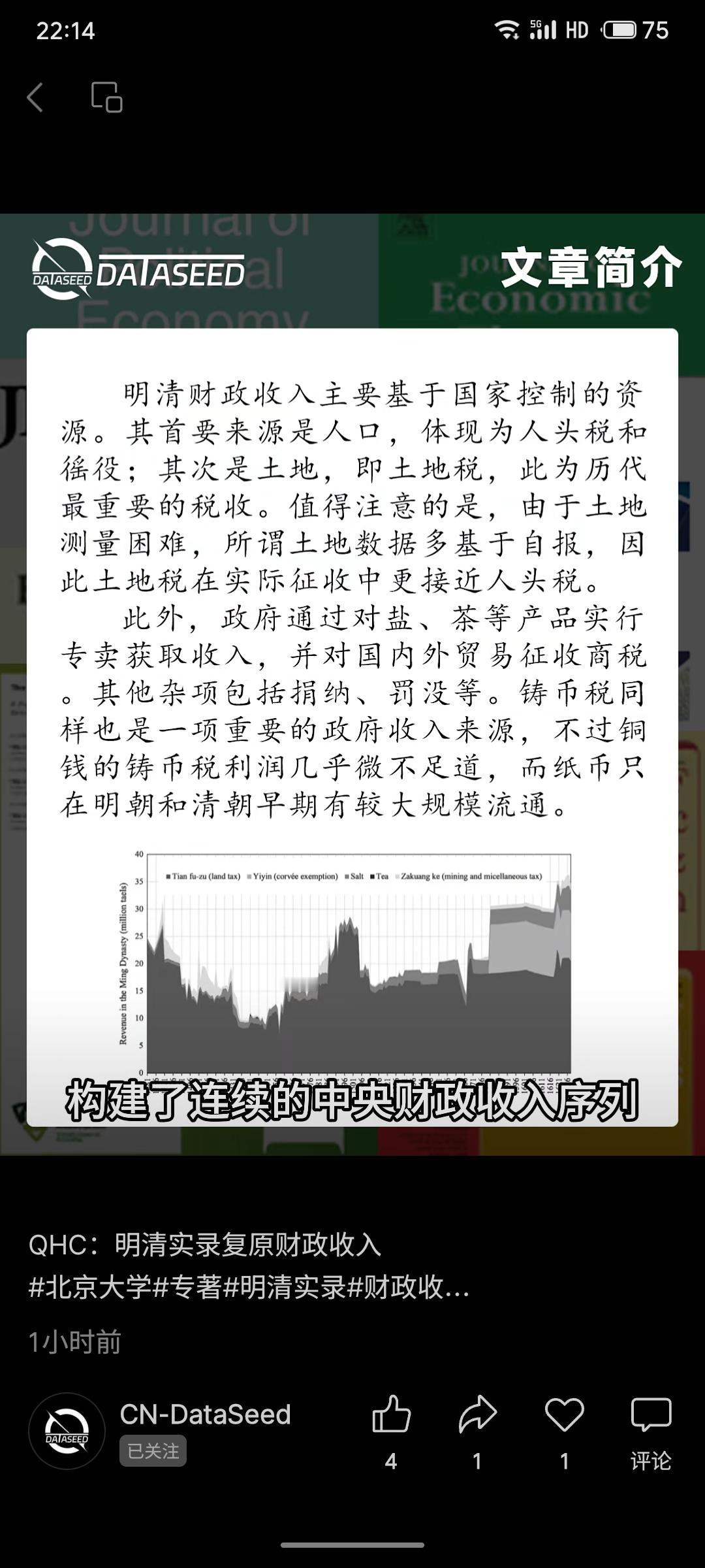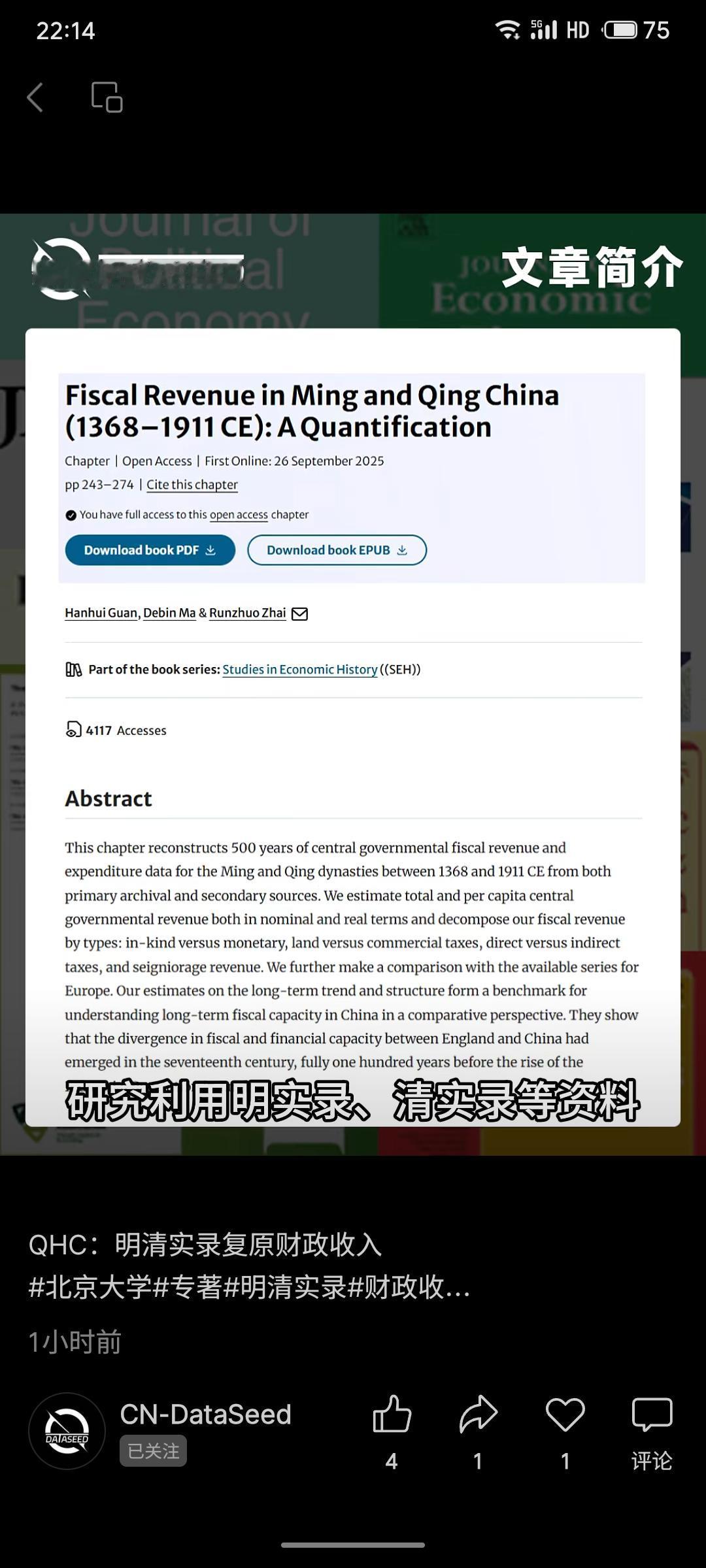 研究基于《明实录》《清实录》等原始档案,首次系统量化了1368-1911年间明清中央政府的财政收入。研究重构了500年的财政序列,并按税种分解分析,发现中英财政能力分化始于17世纪,早于工业革命。该成果为理解中国传统国家能力及东西方“大分流”提供了重要的长期数据基准,具有较高的学术价值。