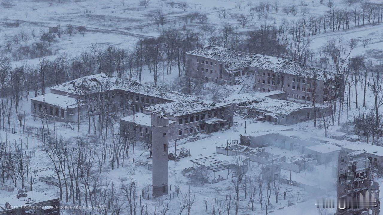 【雪落无声,硝烟不停】乌克兰无人机拍下的库皮扬斯克城市雪景。