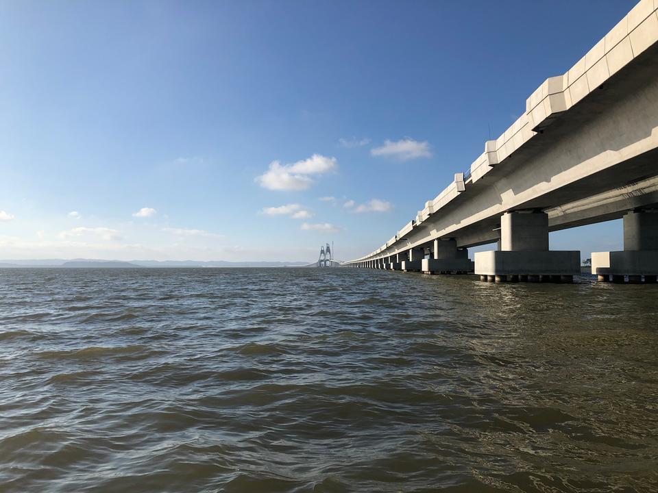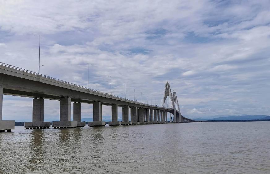 文莱有一座长 30 公里跨海大桥(跨文莱湾)(中国建筑参与建设) 苏丹哈吉奥马尔阿里赛义夫丁大桥(马来语:Jambatan Temburong,爪夷文:Gambai)文莱大桥)是文莱的一座双车道桥梁,横跨文莱湾,连接文莱大陆与其半飞地淡布隆区。它是东南亚最长的桥梁,长 30 公里。 2006-2025年文莱国家土地利用总体规划要求加强文莱-穆阿拉区和淡布隆区之间的联系,并指出淡布隆区地理位置偏远是其发展的制约因素。2012年,公共工程部顾问对一座桥梁连接线进行了可行性研究,证实该项目在技术上可行、财政上可行且环境上可控。随后,于2012年9月发布了全面的环境影响评估招标。到2013年6月,已发出施工资格预审投标书,其中包括苏博克山脊下的隧道和海上高架桥等重要基础设施。这座预计将于2018年竣工的桥梁将完善泛婆罗洲高速公路的一部分,促进淡布隆的发展,并加强文莱和沙巴之间的经济联系。 大桥的建设分为六个“标段”或合同。第一个标段是CC1,即门蒂里隧道工程,涉及在门蒂里山脊修建一系列隧道,连接门蒂里大道(Jalan Utama Mentiri,一条双向封闭式 公路)和哥打巴都路(Jalan Kota Batu)。其他标段包括CC2、CC3和CC4,分别包含海上高架桥、航道桥梁和淡布隆高架桥。CC2和CC3由韩国大林公司承建,该公司负责建造一系列高架桥和两座横跨文莱湾的斜拉桥。与此同时,中国建筑股份有限公司中标CC4,负责建造横跨拉布森林保护区红树林沼泽的陆上高架桥。 CC5A 和 CC5B 分别是交通控制和监控系统以及供电系统。据报道,该项目耗资 16 亿文莱元(截至 2018 年 3 月,约合 12 亿美元)。 该桥于 2014 年开始建设,原计划于 2019 年底竣工通车,但最终于 2020 年 3 月通车。