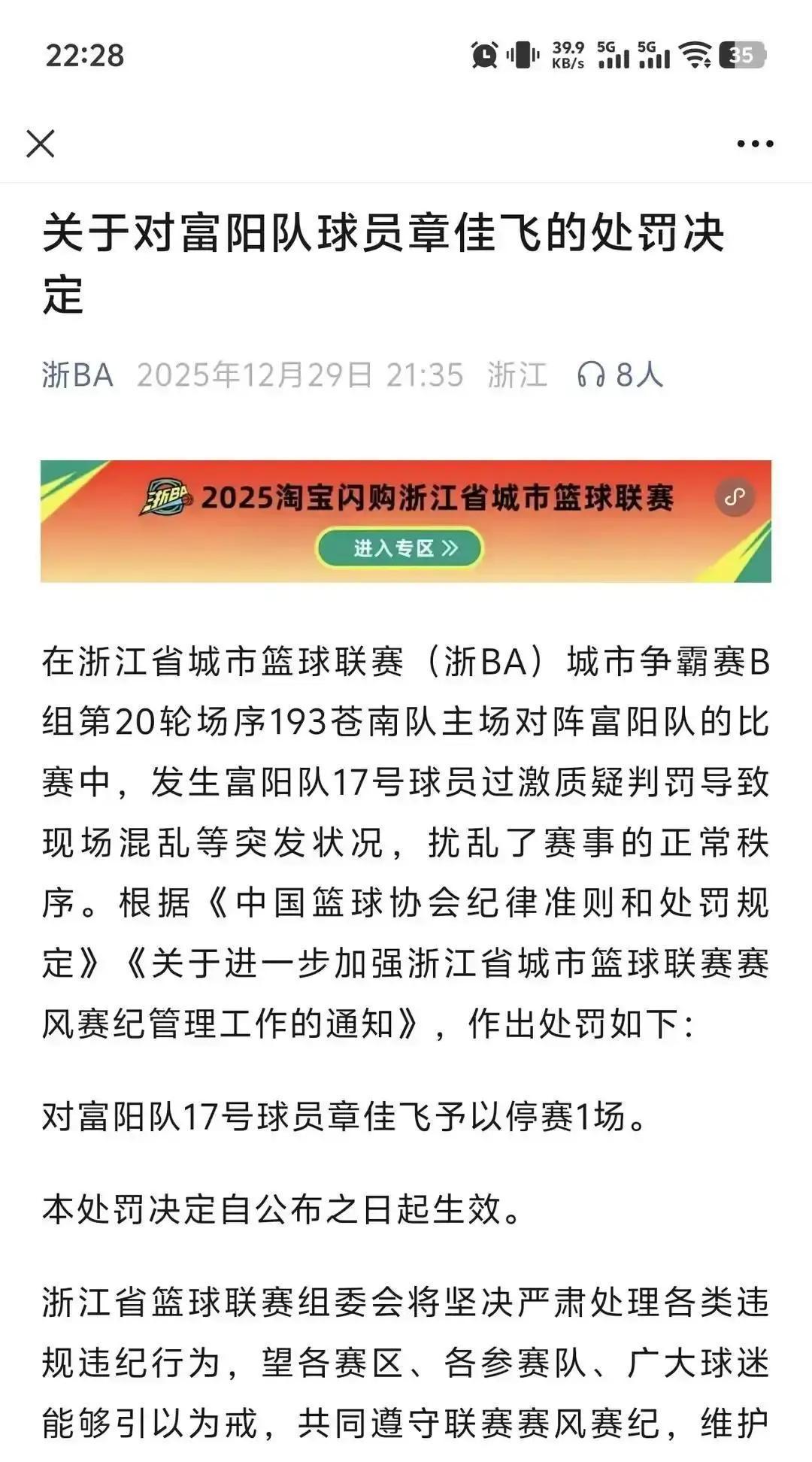 两场禁赛起步,观众暴增代价来了 李昂飞铲那一下,直播镜头全收。裁判回看三秒,直接红卡。浙BA新规:危险动作最少两场。 赞助合同写着:一次粗暴扣五万。一汽掏了八位数,联赛得把脸擦干净。观众想看点火药味,品牌只想看笑脸。 温州队连夜补课规则,富阳队承认战术犯规。杭州队不说话,李昂在找律师。 裁判刚开完会,季后赛要用AI抓犯规。机器不眨眼,动作再大也跑不掉。 球可以硬,动作得收。赞助费在账上,谁犯规谁埋单。