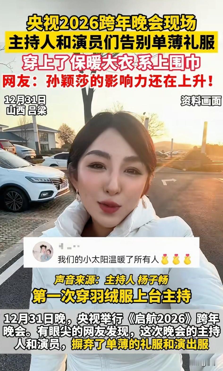 央视2020年跨年晚会上, 主持人都穿上了羽绒服, 这可是前无古人,后无来者, 以前主持人不管天气多冷都是穿着单薄的晚礼服,看着端庄华丽, 实则华而不实, 这么冷的天气穿个晚礼服简直就是泯灭人性,但是今年却改变了, 原因就是孙颖莎影响力太大了, 我都说之前孙颖莎参加节目, 坚决要求主办方让主持人穿上做衣服,主持节目,有了这一次之后, 这才有了后面所有主持人穿上羽绒服主持节目的事情, 这次跨年晚会央视带头让主持人穿上了羽绒服,这才是人该干的事, 就连央视主持人杨子畅都公开表示感谢孙颖莎,在她的从业生涯里, 这是第一次穿上了羽绒服主持节目, 感觉实在是太暖和了, 相信经过央视这次带头, 往后主持人将不会再需要忍受冬天的寒冷,网友纷纷表示真的没有必要穿着那么单薄的礼服去主持节目, 况且大家看节目又不是为了看主持人的穿着,毕竟想看穿着暴露的完全可以去看比基尼时装秀,没有必要去看跨年晚会,大家都纷纷赞同主持人穿上羽绒服主持节目! 感谢孙颖莎,实在太暖心了! 央视主持人礼服 主持人服装 跨年主持人 主持人穿搭礼服 主持人羽绒服 元旦主持人礼服 跨年晚会礼服