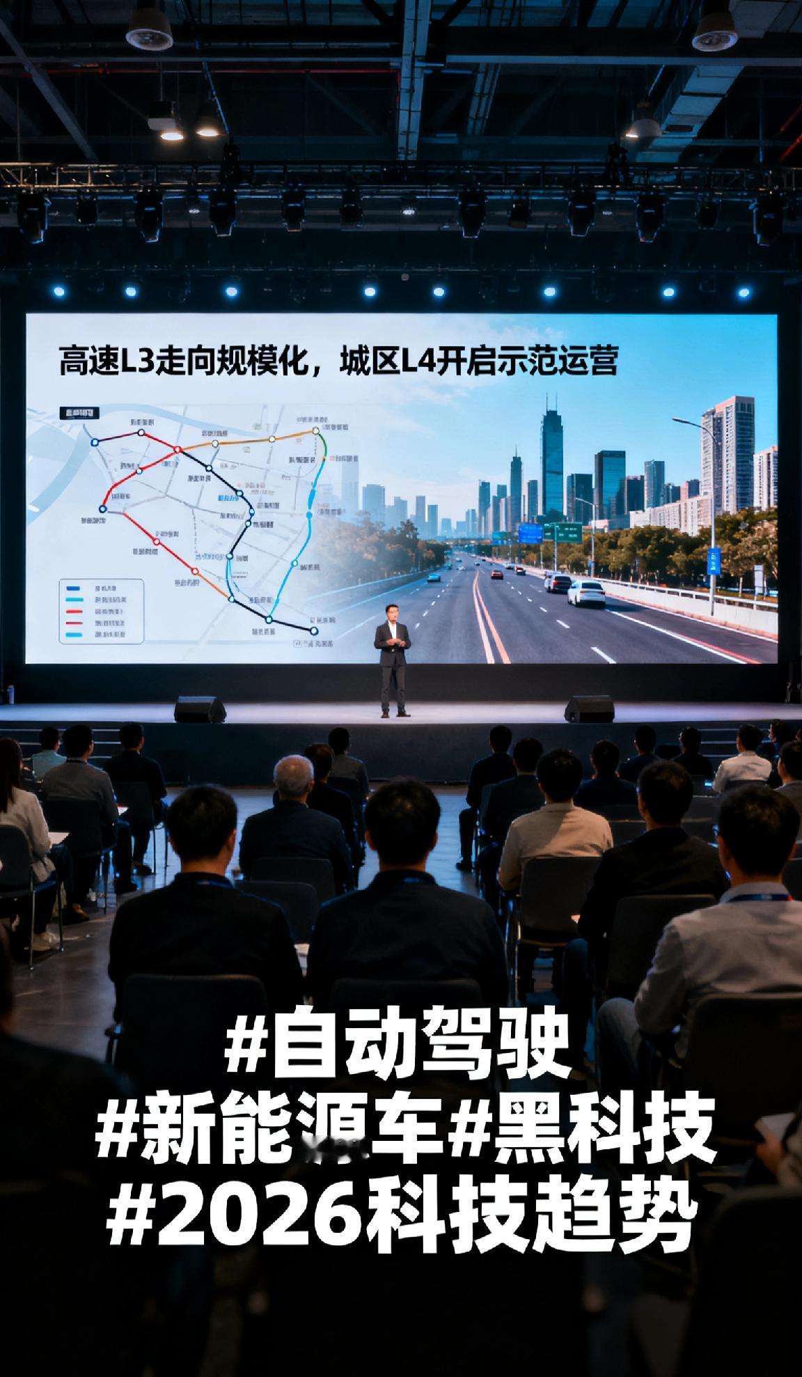 2026年堪称自动驾驶“落地元年”,格局已清晰显现。技术路线分化,小鹏、华为等冲刺L4级高阶技术,限于北京、上海等试点城市特定区域示范运营;奇瑞、长安等车企推进L3级量产,高速/快速路可合法“脱手”,首批车型2026年一季度将试点上路。 政策层面,工信部已放开L3级准入试点,扫清关键法规障碍。不过全面普及仍有阻碍,L4级个人车型价格高昂,法规、成本等仍是待解难题。 一句话总结:高速L3走向规模化,城区L4开启示范运营。你愿意为L3/L4功能额外付费吗?L3车型上市会第一时间尝试“放手”吗? 自动驾驶 新能源车 黑科技 2026科技趋势小鹏 华为汽车