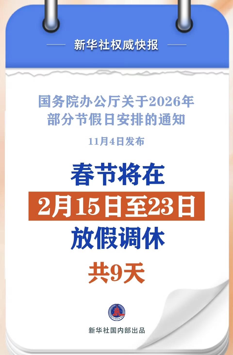 2026年,中国公民将迎来更多假期,全年法定节假日放假调休天数比去年增加5天!这一变化让上班族欢呼雀跃,同时也引发了对未来出行规划的热议。 随着2026年的到来,中国的法定节假日放假调休天数迎来了显著增加,从2025年的28天提升到了33天,其中增加了元旦、春节、清明节、劳动节、端午节、中秋节和国庆节的假期时间。这一政策调整旨在进一步优化国民的生活质量,让更多人有机会享受家庭团聚和休闲时光。根据国务院办公厅的通知,2026年的假期安排如下:元旦为1月1日至3日,春节为2月15日至23日,清明节为4月4日至6日,劳动节为5月1日至5日,端午节为6月19日至21日,中秋节为9月25日至27日,国庆节为10月1日至7日。值得注意的是,为了保证工作正常运转,部分日期被安排在调休或周末补班,如春节前后的2月14日和2月28日,以及国庆节前后9月20日和10月10日。这一政策不仅提升了公众的幸福感,也为旅游业和零售业带来了新的发展机遇。 法定节假日安排 法定假调休 明年的假期安排