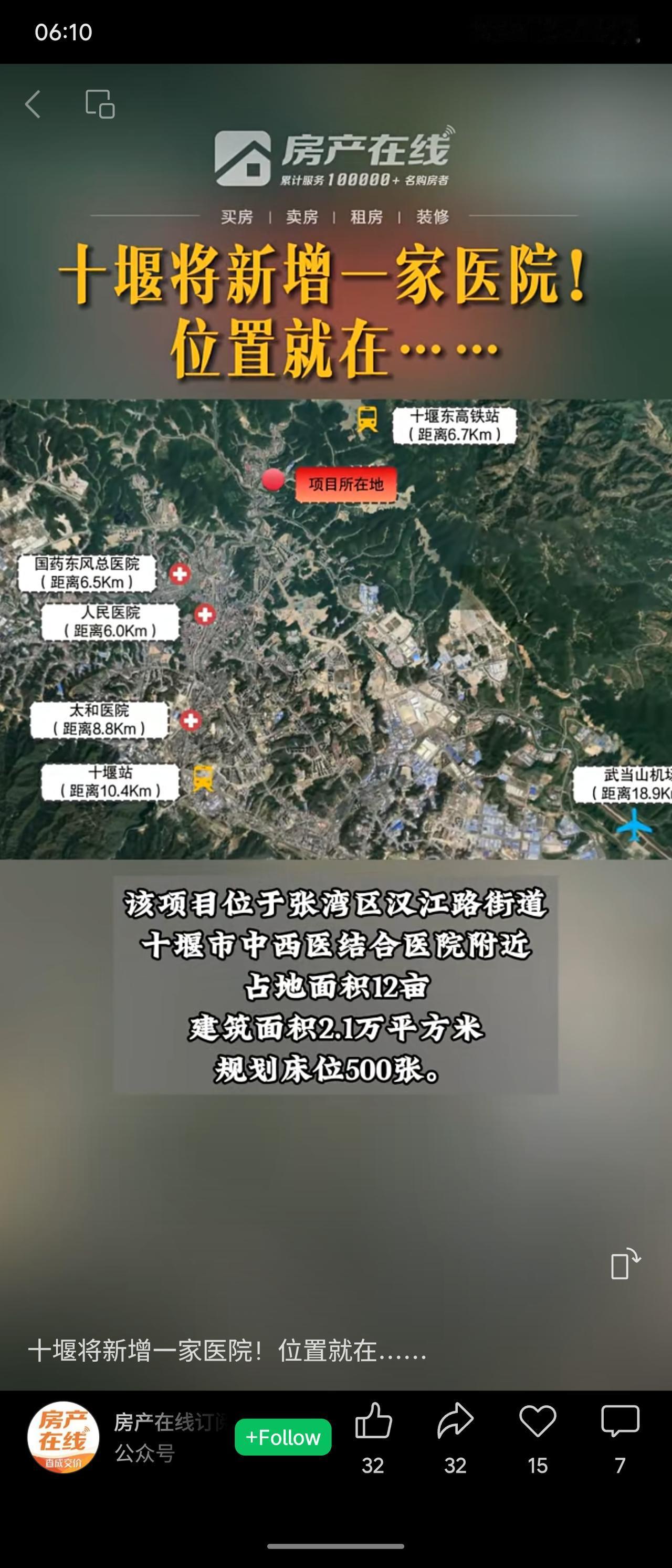 十堰市张湾区将新增一家医院(拟为荣军优抚医院),占地12亩、规划500张床位。项目位于汉江路街道,邻近高铁站与机场。建成后将重点为全市2.1万余名优抚对象及军人军属提供医疗康复服务,同时辐射社会群众,有望提升区域医疗资源与服务保障能力。