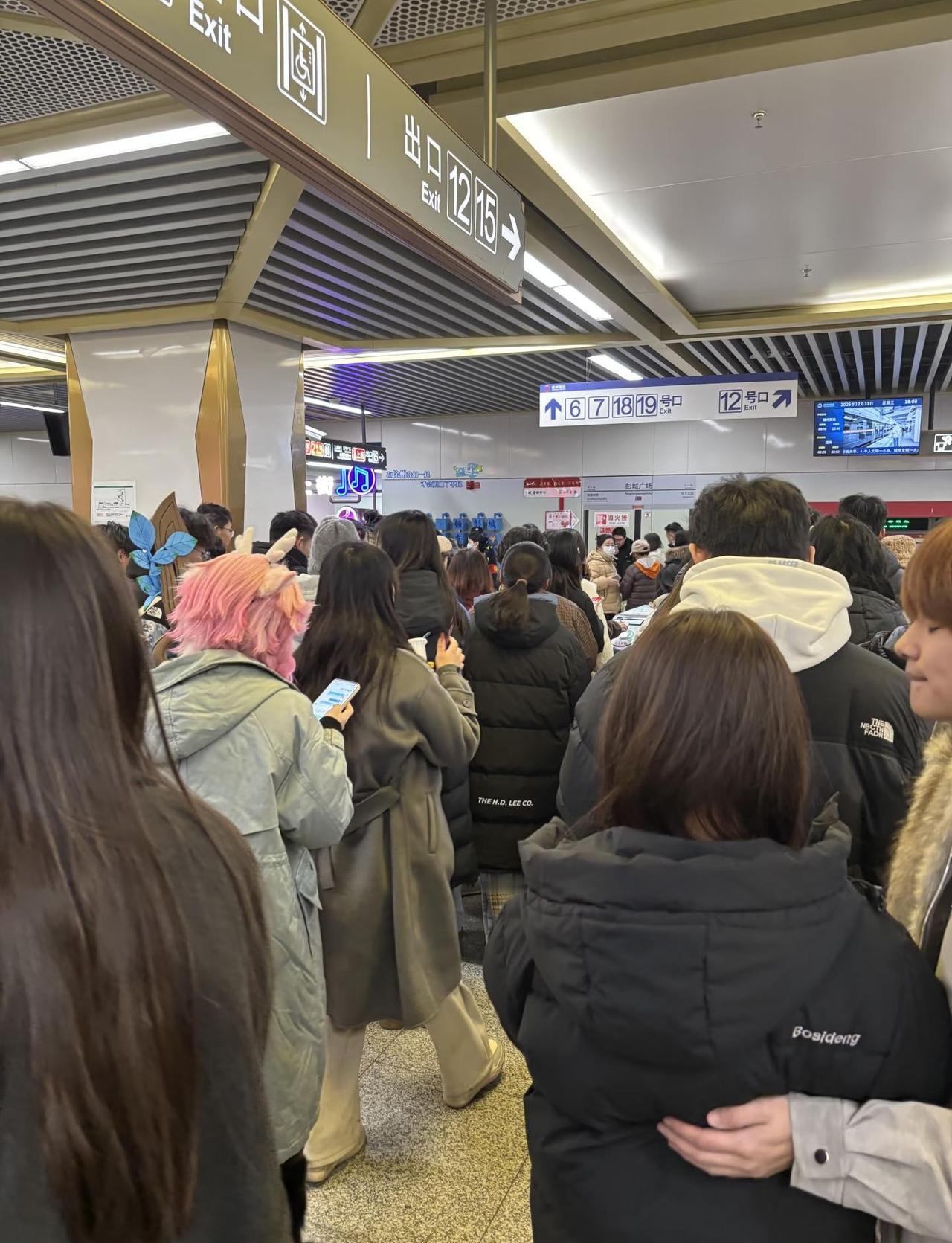 跨年夜的徐州地铁… 徐州拥挤的地铁跨年