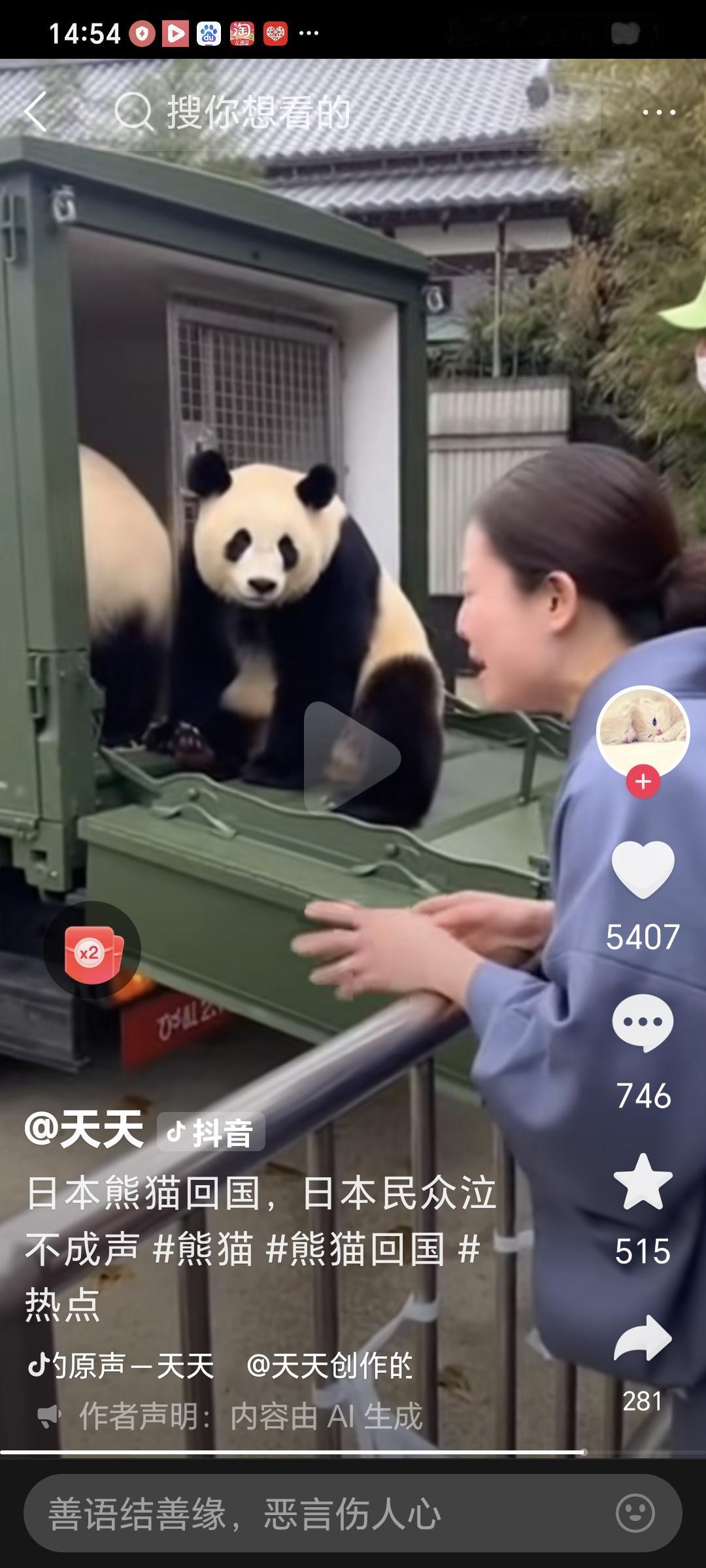 日本民众含泪送别熊猫,国宝踏上回家之路, 我们的熊猫为国家间友好交流做了很多贡献!是个默默无闻的奉献者! 现在,该从日本回家!不是你不努力,是你去的那个日本太让你失望了!回家吧!你辛苦了! 还是中国人大方,善良,这么可爱的熊猫送给日本几年了,为了中日友谊,18年去日本出差,本来去看樱花林的,结果看前面有人排队,就去那排着,一个樱花妹好奇的问了我一句,中国人?你也来看熊猫?我说我来看樱花,然后她就笑,然后指了下另一个方向……一拐弯一片樱花树还有个小湖……看樱花可不用排队!樱花妹也蛮可爱的