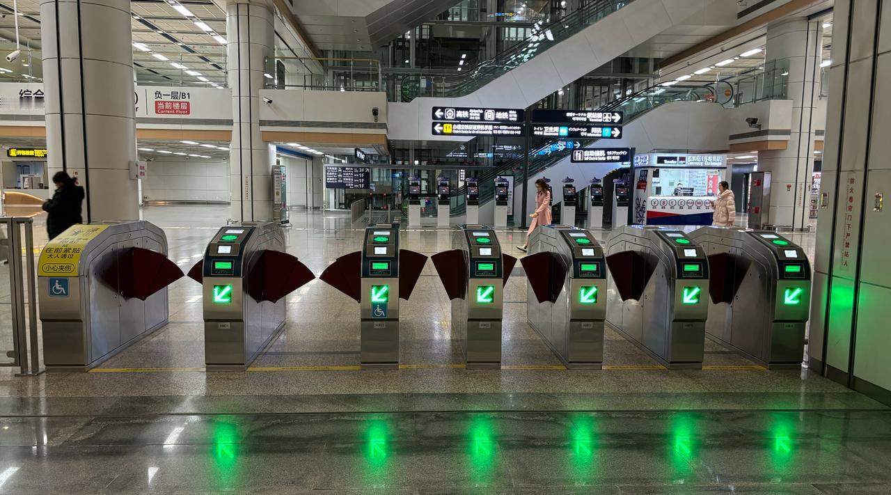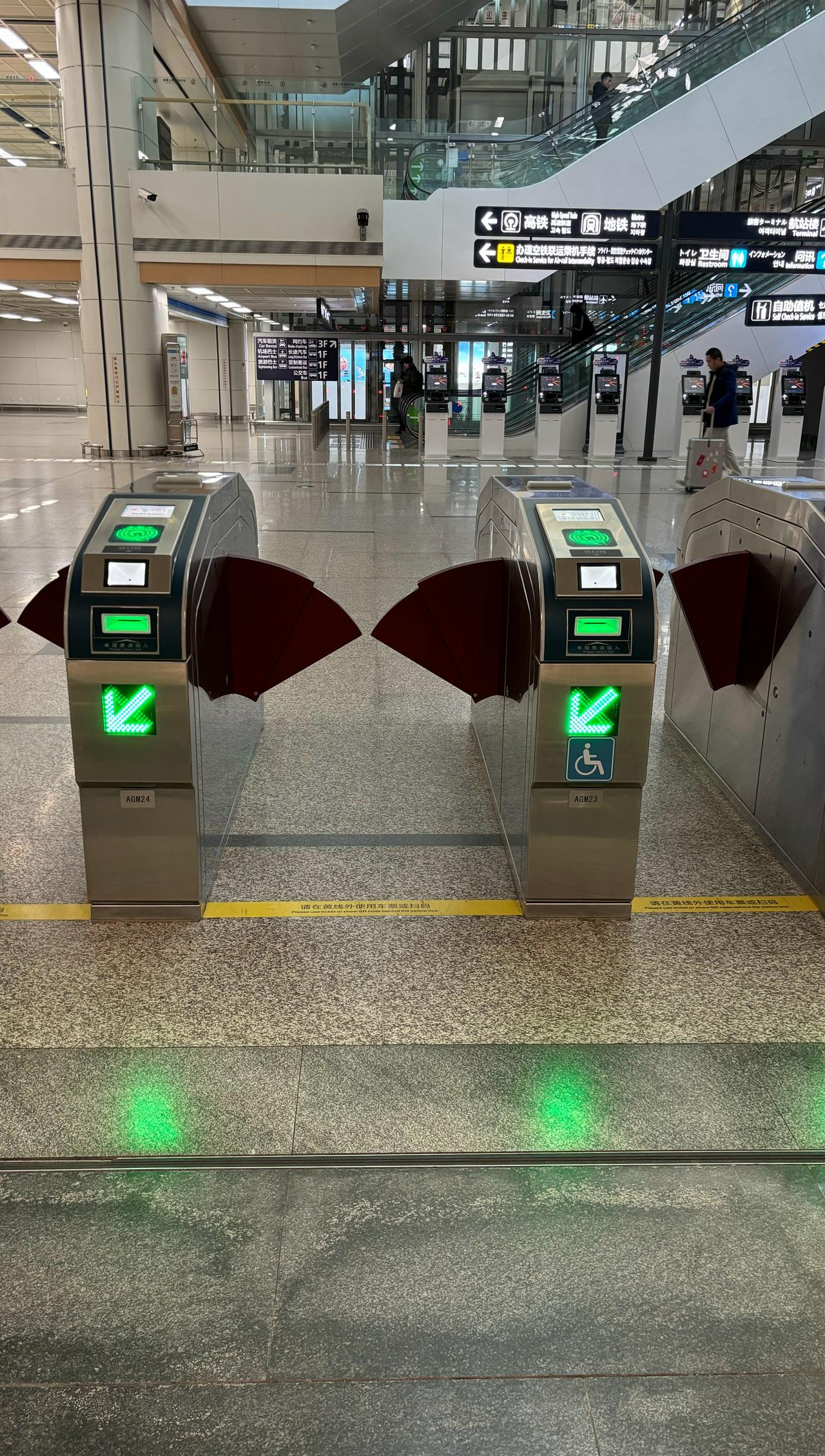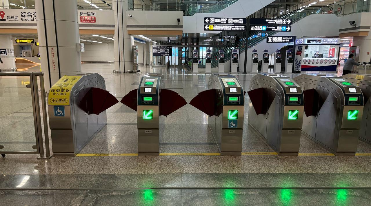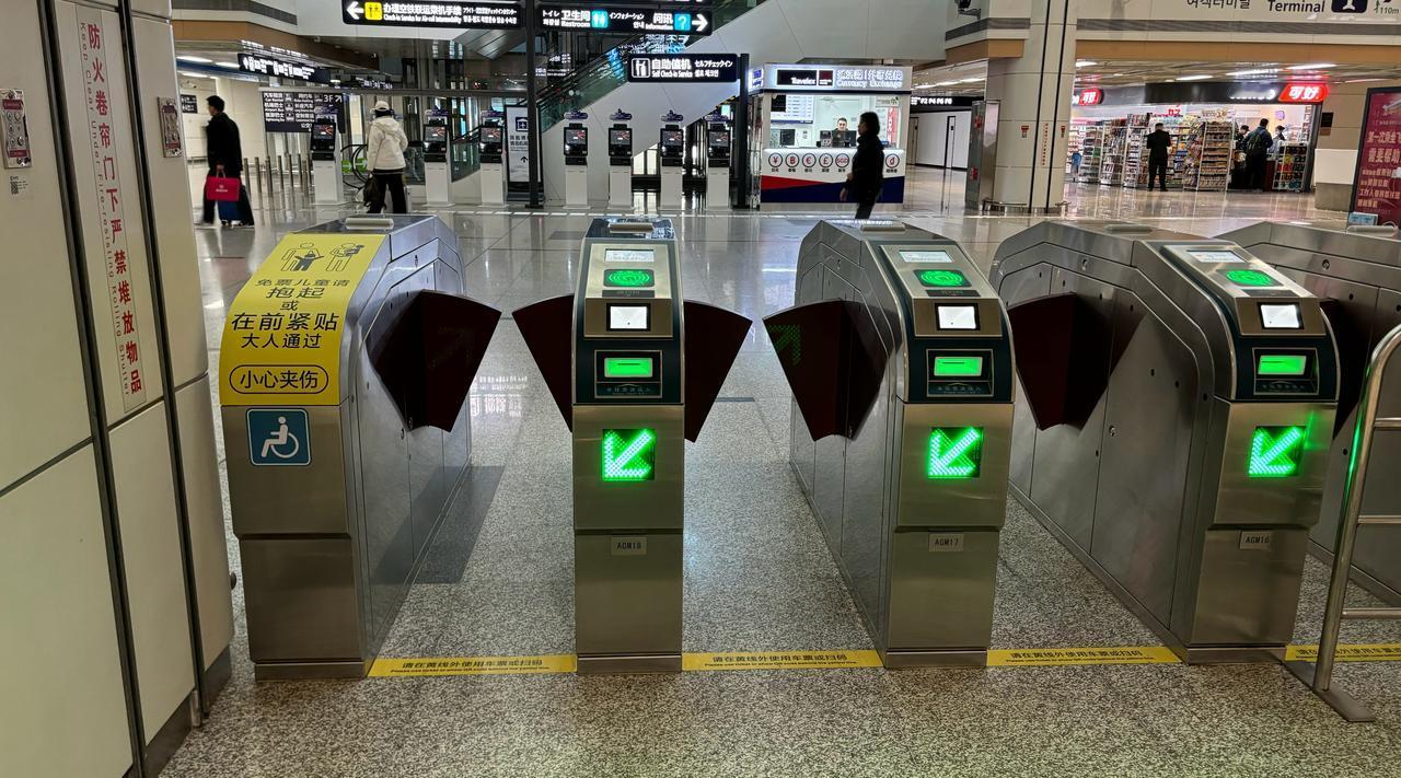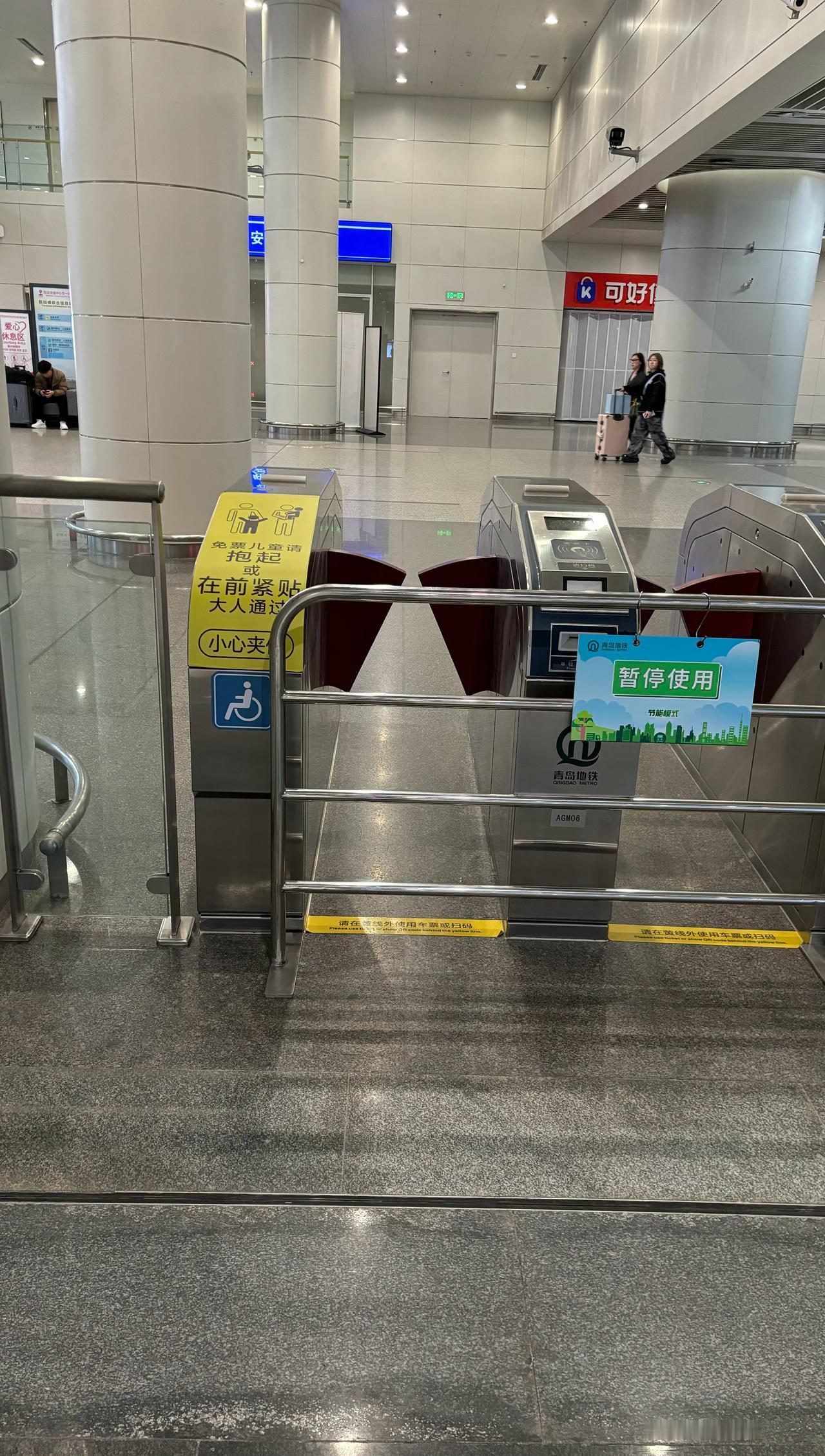 【青岛地铁啄木鸟】𝟒𝟗𝟗𝟖.闸机 🚇8号线 胶东机场 A.图1/图2/图3:第一组闸机 ①最左侧闸机为非宽体闸机,因此蓝色的无障碍设施图形需要撤除,只有宽体闸机才张贴无障碍设施图形,现在属于误导 B.图4/图5/图6/图7:第二组闸机 ②左侧第二部闸机无障碍设施图形应该镜像(人脸超左)对着闸机门,不仅不符合公司镜像规定要求,也与线网不一致(图11/图12) ③左侧第一部、第二部闸机因为同属于一组,不仅闸机上的箭头屏幕、单程票插口在同一水平线上,蓝色的无障碍设施图形也应该同一水平线上才更美观,更何况是交通枢纽站,因为左侧第二部闸机受到屏幕影响在下方,因此左侧第一部闸机的无障碍设施图形也应该下调位置到下方 C.图8/图9/图10:第三组闸机 ④最左侧闸机为非宽体闸机,因此蓝色的无障碍设施图形需要撤除,只有宽体闸机才张贴无障碍设施图形,现在属于误导 因此左侧第一部闸机以下问题因撤除蓝色无障碍设施图形而消失: [左侧第一部闸机无障碍设施图形无需镜像(人脸超右)对着闸机门,不仅不符合公司镜像规定要求,也与线网不一致(图13/图14)] (左侧第一部、右侧第一部闸机因为同属于一组,不仅闸机上的箭头屏幕、单程票插口在同一水平线上,蓝色的无障碍设施图形也应该同一水平线上才更美观,更何况是交通枢纽站,因为右侧第一部闸机受到屏幕影响在下方,因此左侧第一部闸机的无障碍设施图形也应该下调位置到下方) ————————————————————