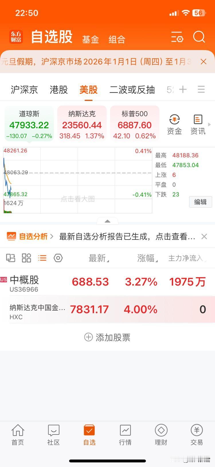 美市三指数高开(1月2日)中国龙指数暴力涨幅4% 北京时间1月2日22:50分数据。明天早上收盘再看收市情况! 纳斯达克中国金龙指数涨4.11%至7839.48,纳斯达克指数涨1.37%,标普500涨0.62%,道指微跌0.27%,科技成长股表现优于蓝筹股; 明天早上收盘美市三指数收小阳,各板块普涨,中国龙指数收大阳。 板块:金属铀、氢能源板块领涨,中概教育等同步大涨,市场风险偏好显著回升。 下周一大A基本稳了,恭喜持股过节的!