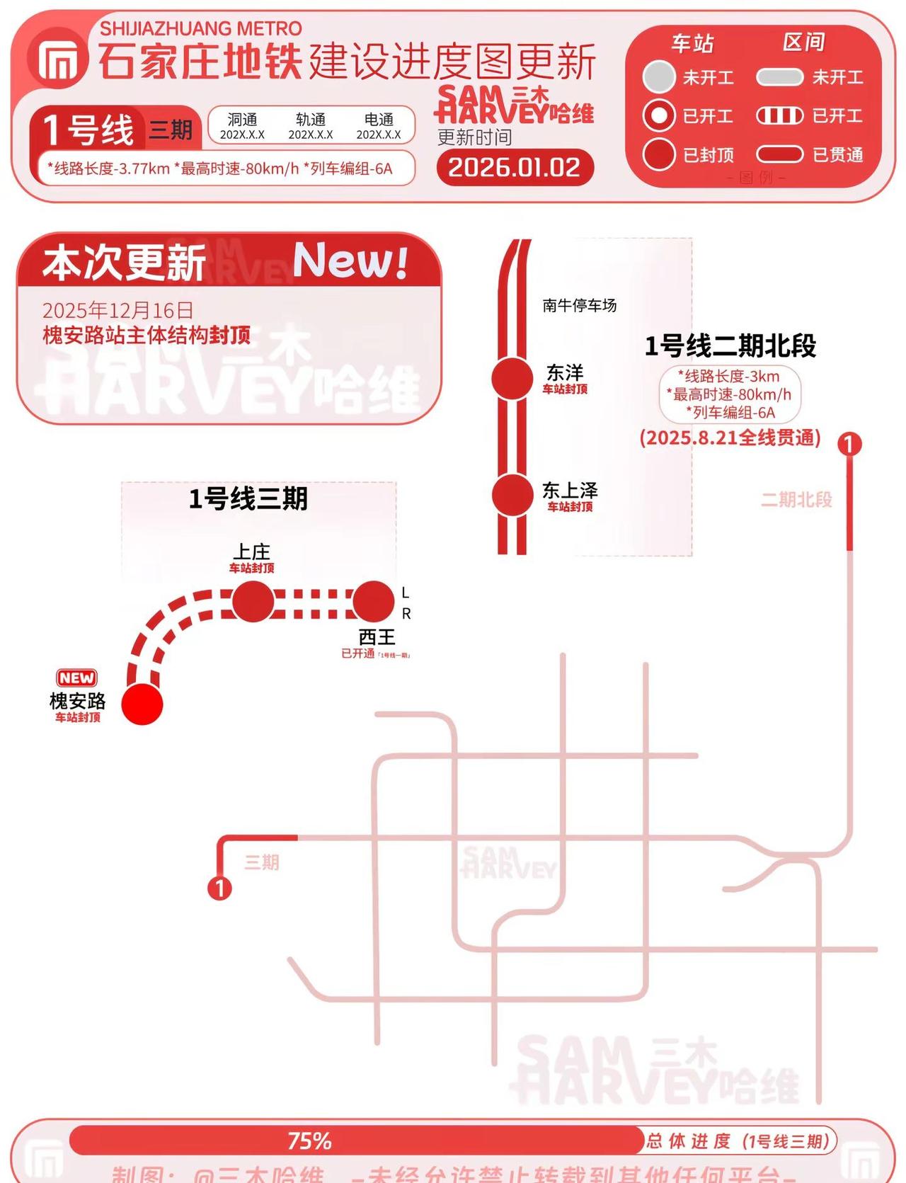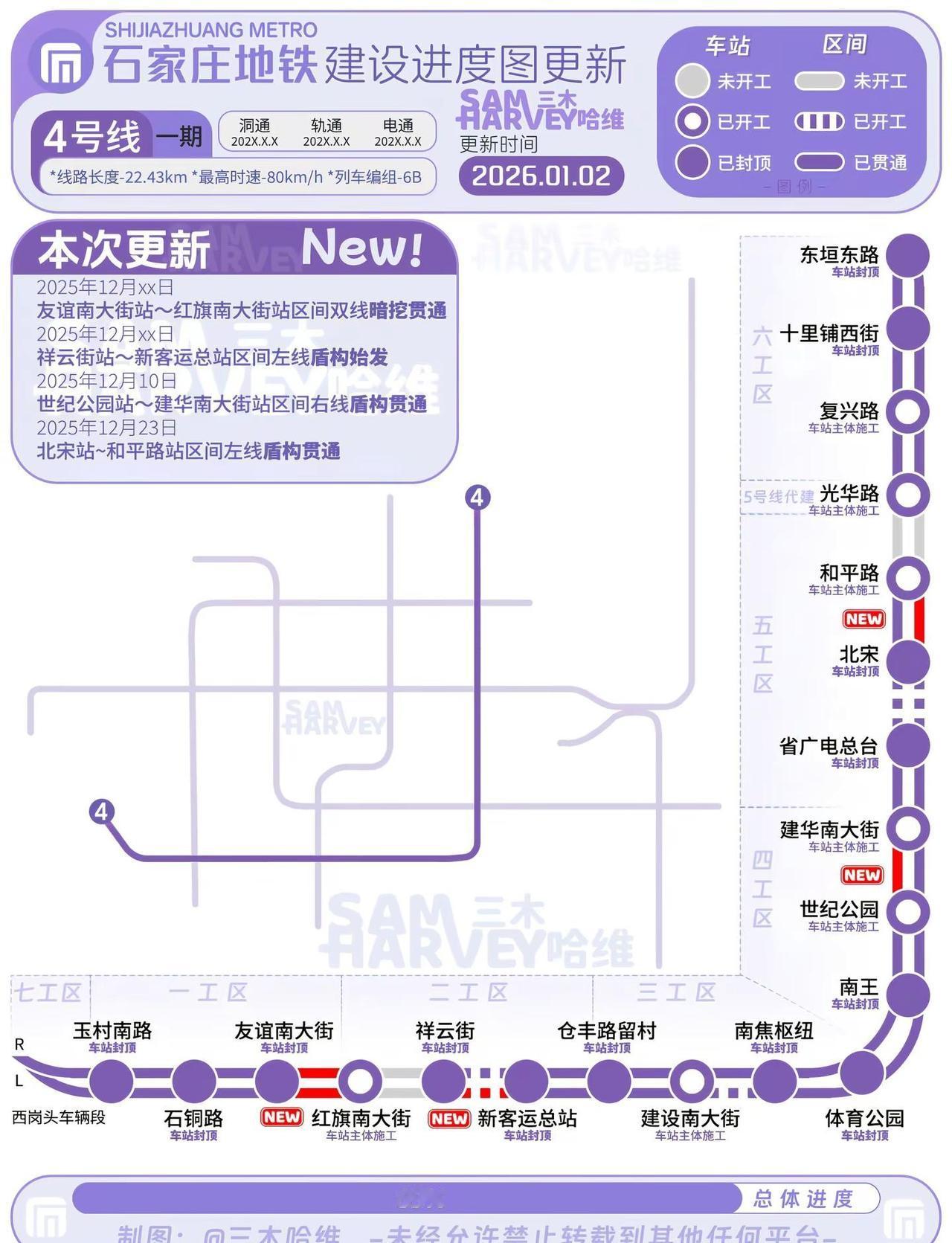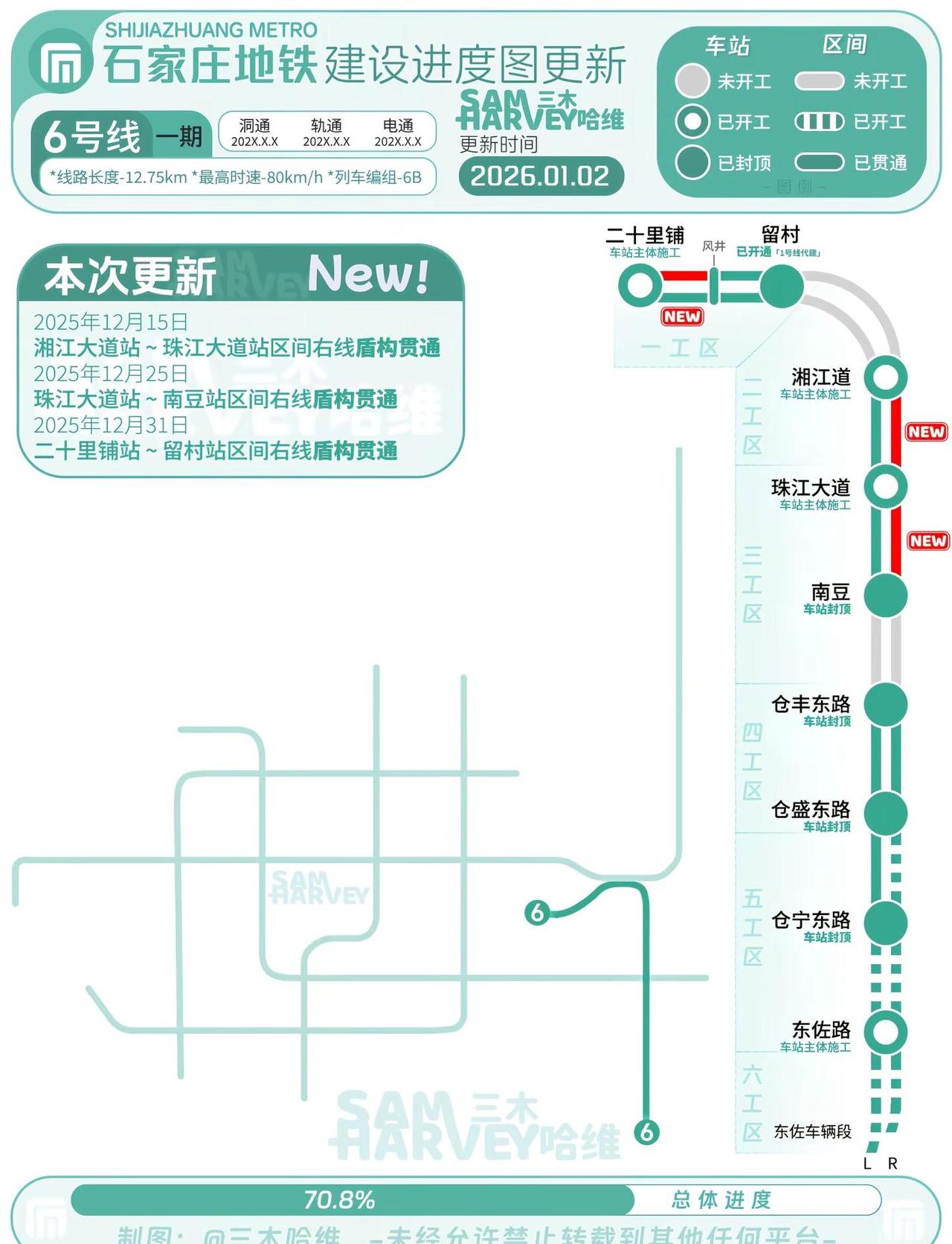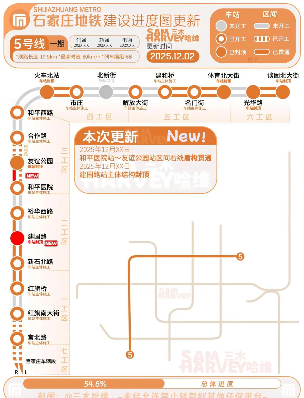 石家庄地铁12月进度。12月进度已更新,除了5号线,其他线路进度均已破七成。地铁