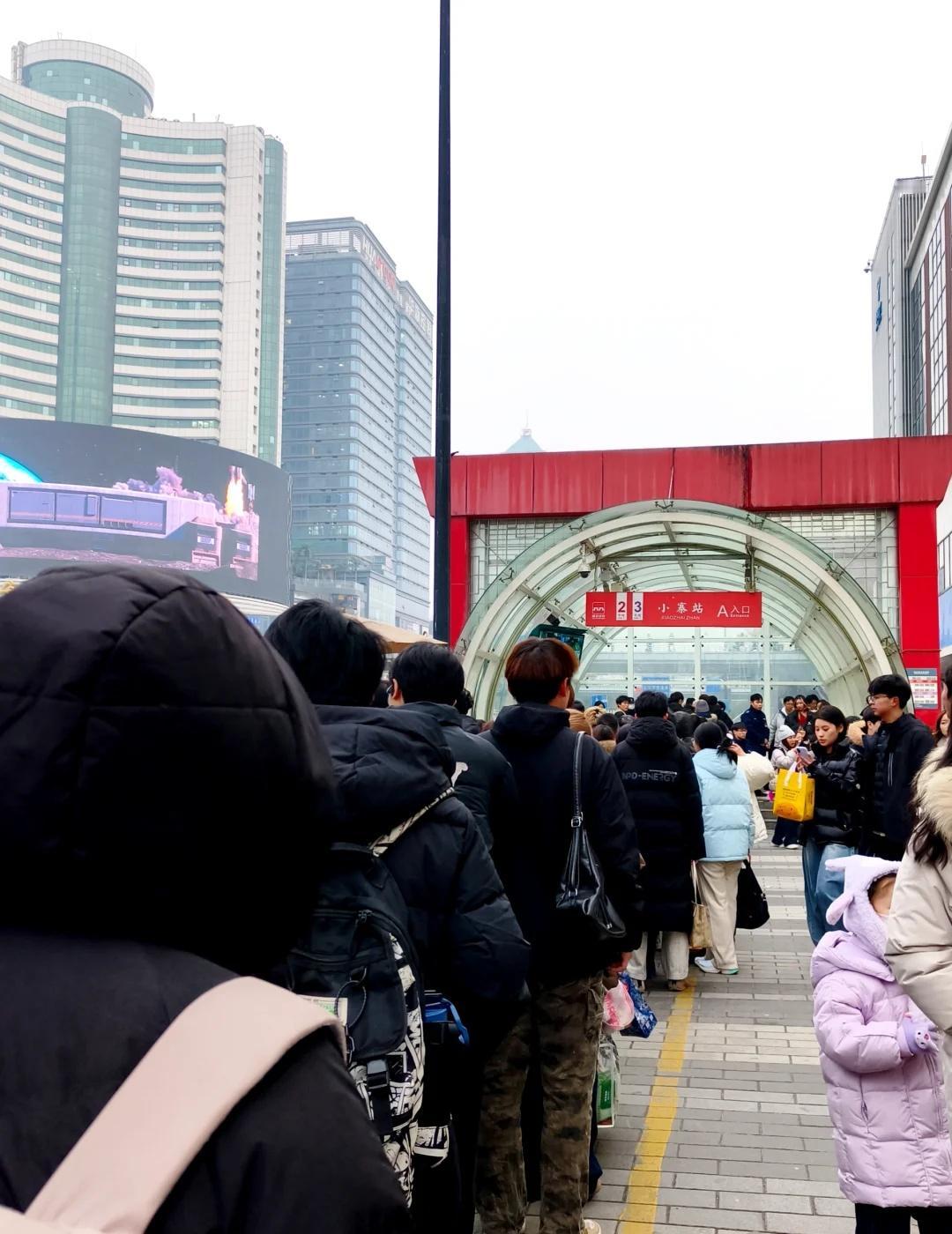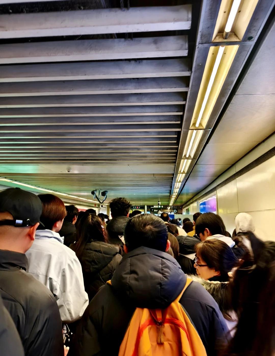 地铁排队,人潮汹涌! 人挤人,队伍几十米长!! 就等着坐地铁!! 过个元旦节,地铁就热闹成这样了! 地铁在想,都害怕你们人类过节了! 地铁口 人山人海太热闹了