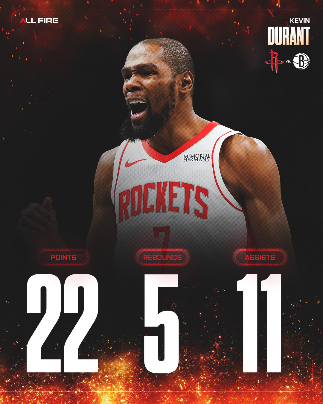 据统计,杜兰特(37岁95天)是火箭队史单场砍下,至少20分10助攻年龄最大的球