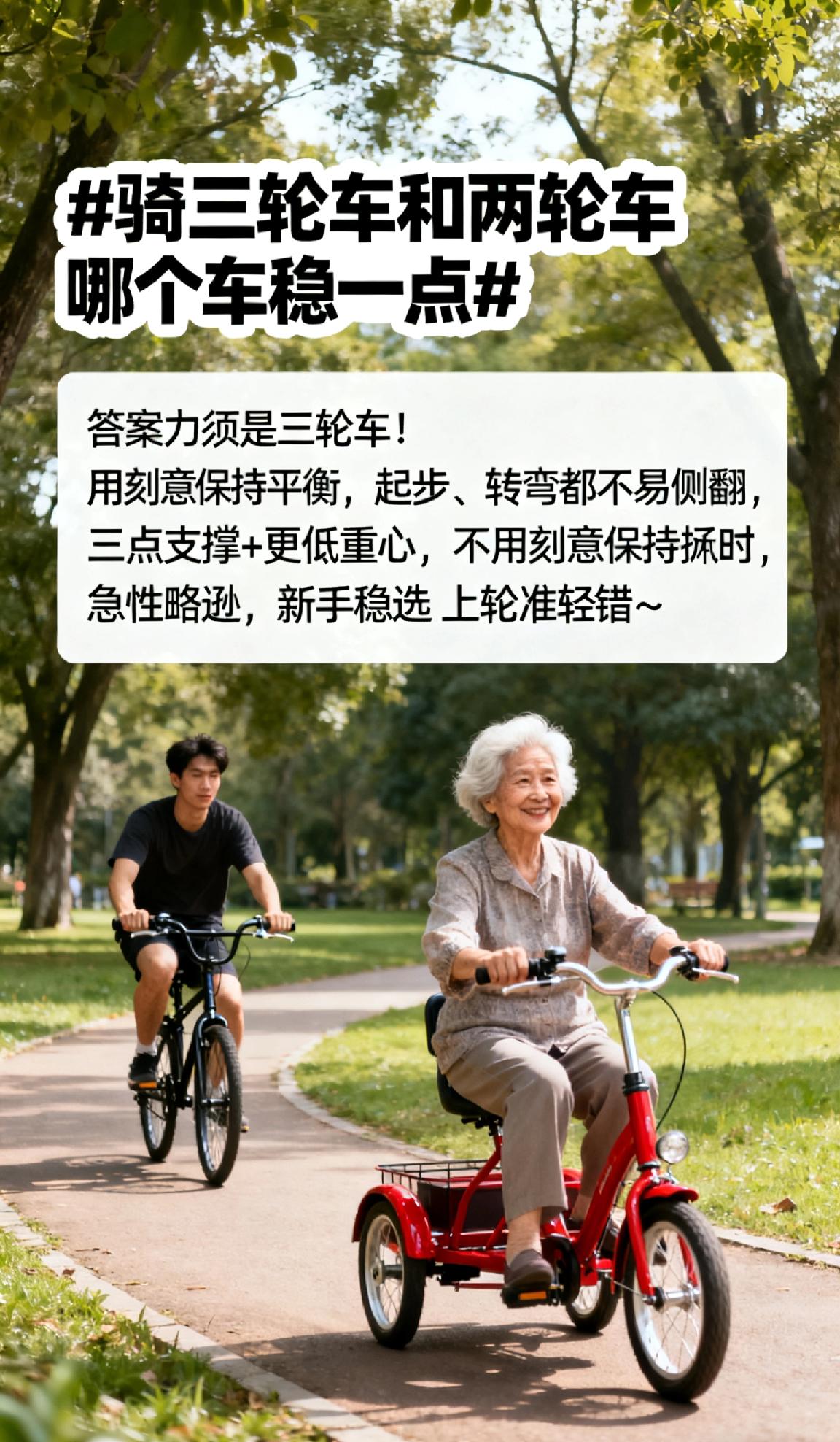 骑三轮车和两轮车,哪个车稳一点?骑三轮车和两轮车哪个车稳一点 答案必须是三轮车!三点支撑+更低重心,不用刻意保持平衡,起步、转弯都不易侧翻,新手和长辈上手超轻松~ 两轮车虽灵活,但依赖核心平衡感,低速或路面颠簸时稳定性略逊,追求稳选三轮准没错! 两轮三轮车 两轮电动车