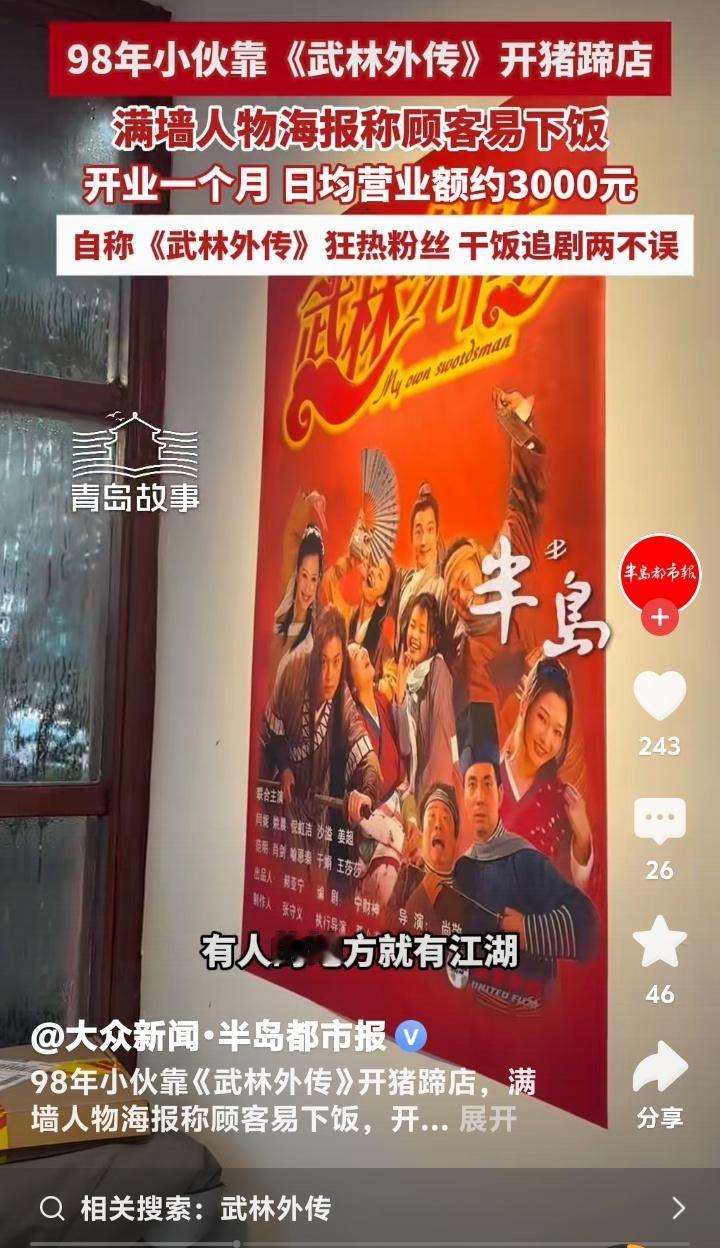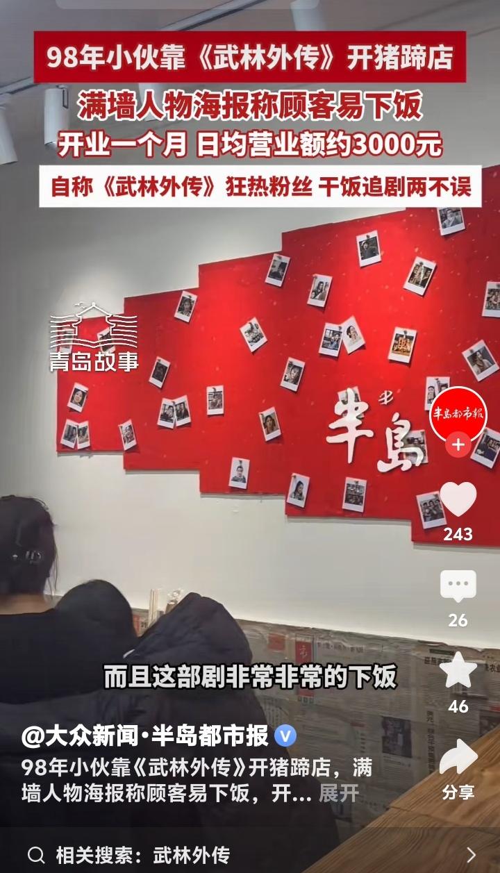青岛台东步行街惊现“武林外传”主题猪蹄店!青岛98年小伙用情怀创业,月入近十万引爆网络争议:是侵权还是创意? 走进青岛台东步行街的一条小巷,浓香扑鼻的卤猪蹄味里混着熟悉的电视对白。“葵花点穴手!”“排山倒海!”满墙的《武林外传》海报下,一群年轻人边啃猪蹄边盯着屏幕笑出声。这家刚开业月余的小店,日均营业额竟达3000元,迅速成为本地美食榜的黑马。 店主是个98年的青岛小伙,自称“武林铁粉”。他说开店灵感源于一句台词:“有人的地方就有江湖。”他想打造一个让同龄人既能重温童年回忆、又能大快朵颐的“江湖食堂”。墙壁贴满佟湘玉、白展堂等角色剧照,电视循环播放经典片段,仿佛穿越回那个守着电视傻笑的年代。 “这部剧特别下饭,好多顾客一边吃一边看,都说胃口更好了。”小伙笑着擦擦手,将刚出锅的卤猪蹄打包递给外卖骑手。他坦言自己打工多年,一直梦想开家有趣的小店,如今借《武林外传》的情怀落地生根,每天忙得踏实又快乐。 然而网络争议随之而来。评论区炸开了锅:“用影视IP盈利涉嫌侵权!”“律师函警告!”“这属于商业使用,得交版权费吧?”也有网友力挺:“创意无价!”“情怀变现怎么了?”“比那些抄袭的强多了!”一场关于创意与版权、情怀与商业的辩论悄然蔓延。 透过现象看本质,这背后是年轻人对情感联结的渴望。在快节奏的都市里,一家能瞬间唤醒集体记忆的小店,成了疲惫生活的“解压阀”。那些海报与台词不止是装饰,更是共鸣的开关,让顾客为情绪体验买单——吃的不仅是猪蹄,更是逝去的青春。 从创业角度,小伙抓住了“兴趣经济”的脉搏。他将个人热爱转化为商业特色,用低成本营造高辨识度,在餐饮红海中撕开一道口子。日均3000元的成绩,印证了情感附加值的力量。但版权风险如悬顶之剑,提醒着所有创业者:情怀需有度,创意需守界。 站在消费者立场,我们何尝不期待更多这样有温度的小店?当标准化连锁店充斥街头,一家充满故事与笑声的小铺反而珍贵。或许我们支持的不仅是老板的梦想,更是那个愿意为情怀停留的自己——在啃猪蹄的片刻,找回简单的快乐。 争议未必是坏事。它让更多人思考创意的边界,也让小店意外获得流量加持。有网友建议:“不如主动联系版权方谈合作,化风险为机遇。”这或许是一条出路,让情怀走得更远。 青岛的海风依旧吹着台东步行街。这家小店的故事,映照着无数年轻人的创业梦:用热爱点燃事业,以初心应对挑战。无论未来如何,此刻灯火通明的小店里,欢笑与香气正勾勒出城市夜生活中最生动的一隅。 (来源:半岛都市报、大众新闻、网友评论综合) 情怀创业 版权边界
