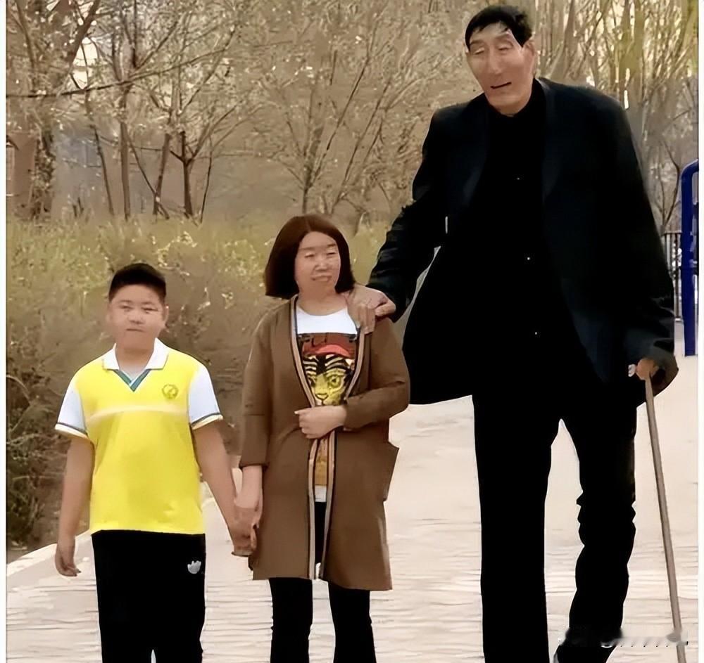 74岁中国第一巨人现状曝光!儿子身高真相令人意外 谁能想到,一个被命运摁在地上摩擦了大半辈子的人,最后能笑着讲出自己的故事。鲍喜顺,这个名字曾和“巨人症”“怪人”“不合群”绑在一起,如今却成了短视频里跳着舞、搂着妻儿打趣的老爷子。2.36米的身高,曾经是他躲都躲不掉的枷锁,可现在,它只是他人生背景板上的一道影子。 时间倒回2008年,内蒙古一家医院的产房外,站着个比门还高出一截的男人。他手心全是汗,手指泛白地攥着拳头,等了将近十个小时。当里面传来婴儿的第一声哭,他几乎是踉跄着扑到门口,接过那个小得能搁在掌心的孩子。那年他57岁,妻子夏淑娟才28岁,剖腹产下了8斤4两的儿子。医生说孩子各项指标正常,他当场给孩子取名“天佑”——老天保佑的意思,他自己都知道,这名字里藏着多少后怕。 当初他们决定要孩子的时候,几乎所有人都在劝退。医院的诊断书白纸黑字写着“不建议生育”,风险太大。57岁的年龄配高龄产妇,再加上巨人基因的不可控性,孩子极可能遗传异常,甚至出现畸形或先天疾病。亲戚摇头,朋友沉默,网上更是骂声一片:“拿孩子赌命”“自私到没底线”。可鲍喜顺和夏淑娟就是不肯松口。她说,“我爱的是他这个人,不是他高不高。”他呢,只是沉默地握着她的手,眼神没松过。 这事儿要是搁早些年,他想都不敢想。1951年出生在草原上的鲍喜顺,小时候跟普通孩子没两样。可15岁那年,身体突然像被拉扯着往上蹿,一年涨了快40公分。等到20岁,已经站上2.1米,最后定格在2.36米。布要五米做一套,鞋没人卖,饭量顶三人,关节疼起来整夜睡不着。村里人叫他“怪物”,打工没人要,连篮球梦都在沈阳破灭——伤病和协调性让他跟不上节奏,最后黯然回家,窝在牧区三十年,几乎不和外人说话。 直到2004年,一个叫辛幸的企业家听说了他,上门三次,请他去火锅店当迎宾。就这十来天的工作,让他第一次穿上了合身的衣服,第一次听见陌生人笑着说“哎哟,真高啊,但挺亲切的”。2005年,他拿到了吉尼斯“自然生长第一高人”的认证,名字传开了。可热闹归热闹,夜里躺下,还是一个人。他不止一次对着星空想:我这一辈子,是不是就这样了? 然后他遇见了夏淑娟。28岁的销售员,个子不算矮,但站他旁边像小朋友。相识一个月就领证,婚礼在景区办,二十多家企业赞助,花了70万。有人酸说她图名图利,她只一句:“日子是我们过的,关你什么事?”定制的2.8米大床摆进新房,生活慢慢热乎起来。 儿子鲍天佑长起来特别快,10岁就1.6米,看得人心惊。夫妻俩定期带他体检,每次医生说“骨龄正常,没巨人症迹象”,鲍喜顺才敢把心放回肚子里。后来视频账号开起来,一家三口跳舞、做饭、讲段子,有人发现镜头里似乎还有个小孩,猜他二胎了。视频里那两个孩子个头都正常,笑得也敞亮。 现在他74了,头发全白,走路慢,但精神头不差。直播带货赚点钱,日子过得不紧不慢。那些年被异样眼光扎过的伤口,早被这烟火气一点点捂热了。