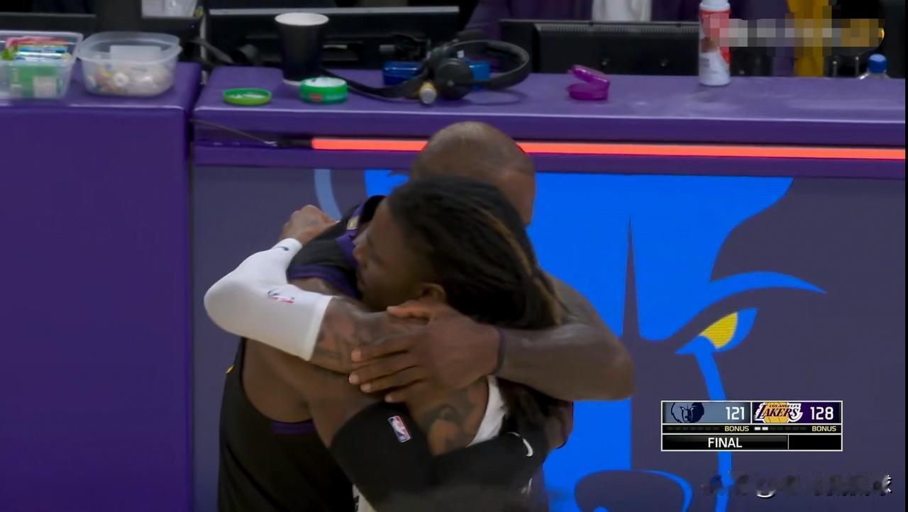 在今天湖人主场以128:121力克灰熊的赛后,发生了特别感人的一幕。当比赛的终场哨声响起以后,湖人巨星詹姆斯先是和灰熊当家球星莫兰特紧紧的拥抱致意,随后詹姆斯又和前队友波普紧紧的拥抱在一起,场面看起来非常感人。老实说,每当我在赛后看到这样的场景时,我都会深受感动,因为这是篮球运动的另一种魅力。