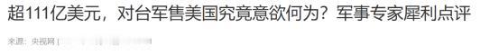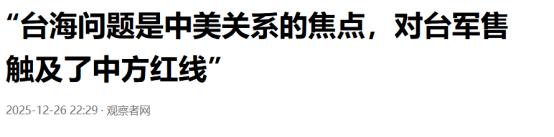 美国该醒醒了!2026年12月17日,美宣布对台军售!美国嚣张的挑衅,究竟意欲何为? 针对台湾问题,我国多次表明不允许任何外部势力干涉。但是美国却不停的对台军售,尤其是特朗普就职之后,更是多次对台采取军售。尤其是在近期,美国加剧了对台军售的力度。 2025年12月17日的时候,美国政府宣布将对中国台湾地区出售价值超过111亿美元的武器装备。这是美国对台军售史上之最,美国在宣布这则消息之后,美国国务院表示此次军售就是为了确保台湾有可靠的防御能力。 此举引起国际高度讨论,我国也在第一时间采取了反制措施。在2025年台湾问题极其突出,我国针对台湾问题采取了一些实际行动,例如设立台湾光复纪念日等。以一些实际行动去向国际重申,台湾是属于中国这一事实。 但就在这个前提下,美国仍旧嚣张的对我国发出挑衅,其究竟意欲何为?对于这一点专家进行了解读,称台湾对美军售主要动机之一就是从中获得巨额利润, 变本加厉的掏空台湾地区。 其实美国早已经意识到了,同中国没有抗衡的能力,台湾最终只会是一个废掉的棋子。但即便如此,仍旧选择加速武装台湾。其目的已经非常的明显,但台独分子却始终没有意识到,仍旧狐假虎威! 那么针对美国越发挑衅的这种行为,我国又该怎么办呢?答案就是加大统一力度,以实际行动去反制美国。美国的举动越发嚣张,我国的反制力度就应越强。只有把敌人打到疼,敌人才能够有所畏惧。 对此,您怎么看?欢迎评论区留言您的看法,我们一起讨论一下。 (信息来源:“台海问题是中美关系的焦点,对台军售触及了中方红线”-观察者网) (信息来源:超111亿美元,对台军售美国究竟意欲何为?军事专家犀利点评-央视网)