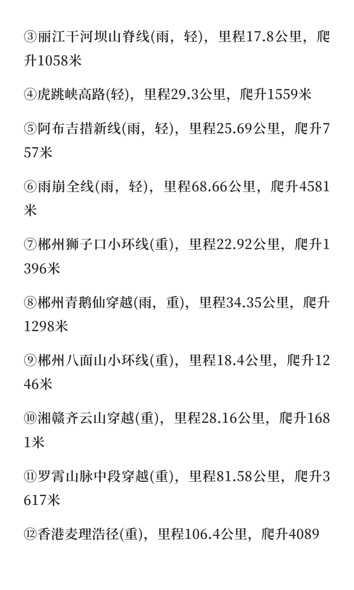⑫香港麦理浩径(重),里程106.4公里,爬升4089米