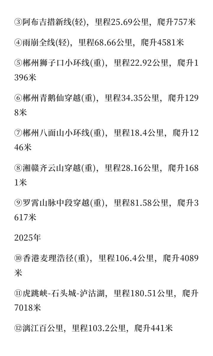 ⑩香港麦理浩径(重),里程106.4公里,爬升4089米