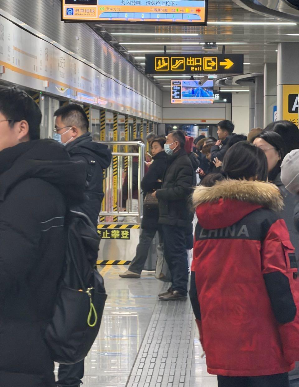 2026年1月3日(元旦三天假期最后一天)18:18济南地铁2号线彭家庄方向,济泺路站候车人群和车厢人流量很大。