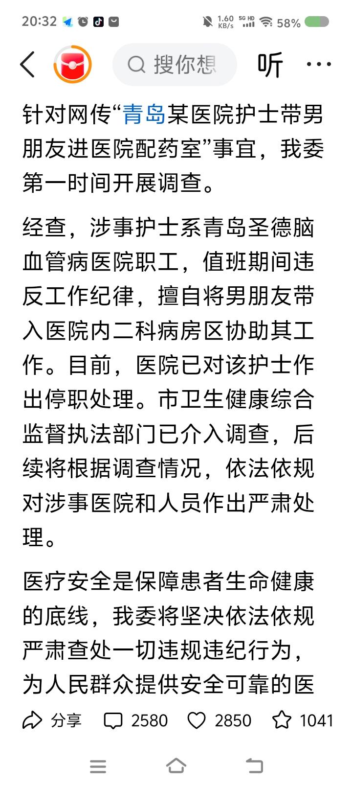 这护士,令人无语了!—— 据报道,一护士发视频炫耀男友陪同值班,还帮她贴标签、写报告。有关部门已调查此事。 点评: 陪同上班已是违规,还代劳工作,你还发网上,咋想的? 无论如何处罚,都平复不了民众的愤怒与担忧。