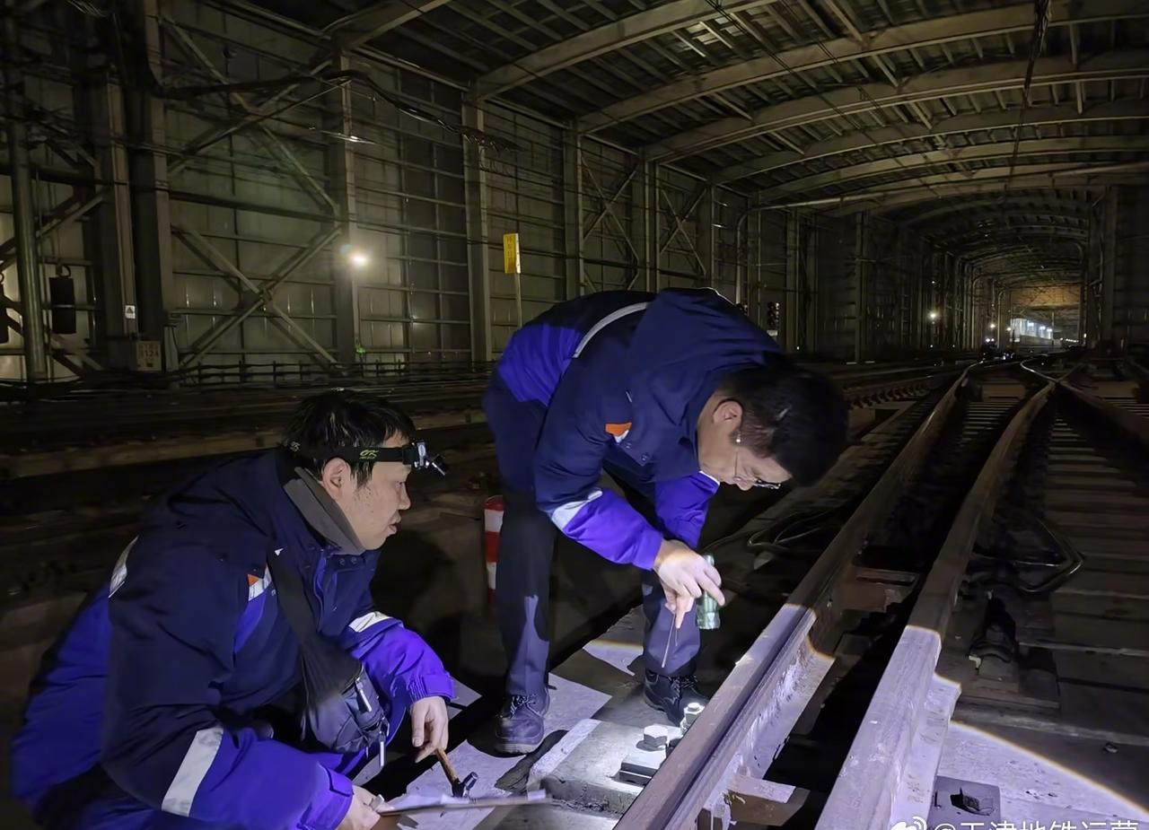 【跨年夜的“轨道守护者”】当津城跨年的喧嚣渐歇,当最后一班地铁缓缓入库,地铁工务人迎着夜色奔赴岗位,开启了新年第一天的线路体检。测量轨道几何尺寸、紧固松动扣件、排查线路隐患…… 跨年夜不足一小时的“检修天窗”里,他们弯腰俯身、精准操作,用专业与专注为轨道“强筋健骨”。