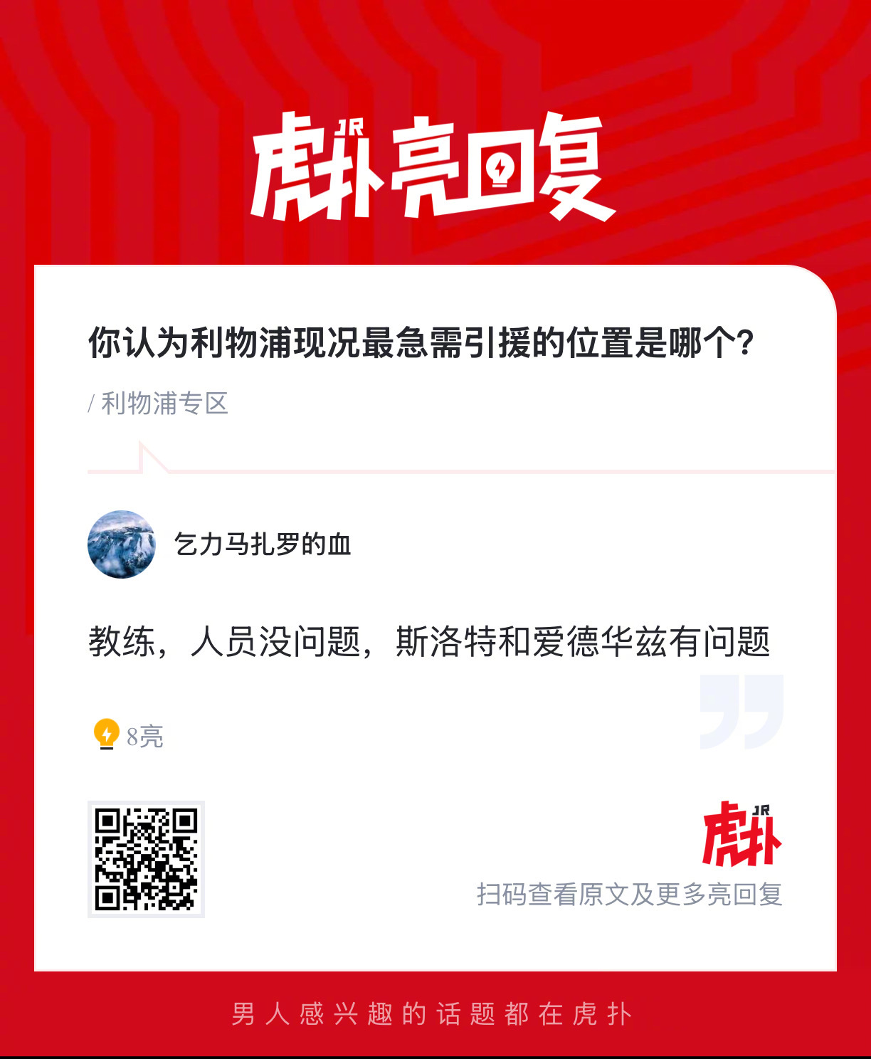 你认为利物浦现况最急需引援的位置是哪个?