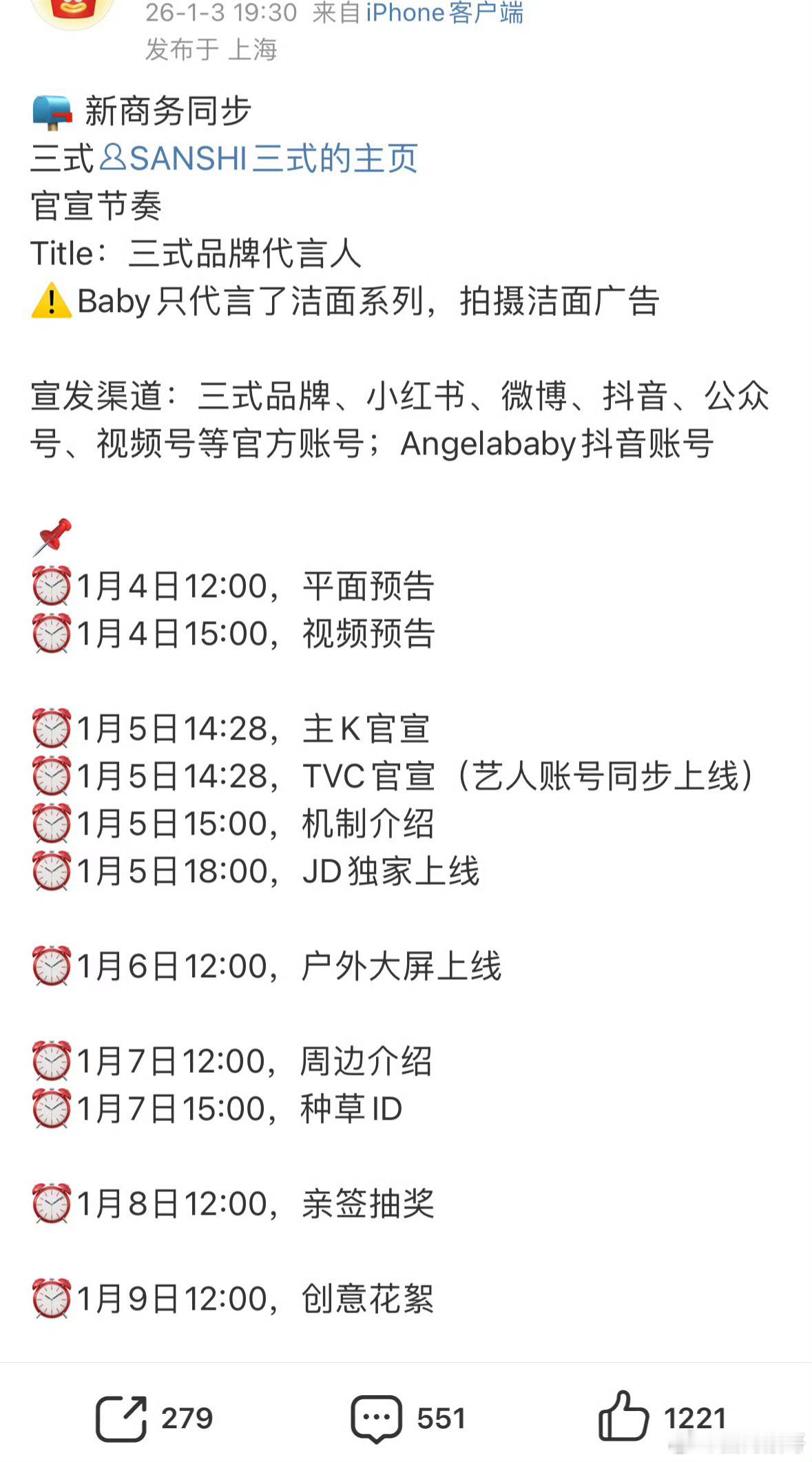 鼻粉自制的Angelababy杨颖一月份的行程图,既有新sw代言还有直播和广告拍