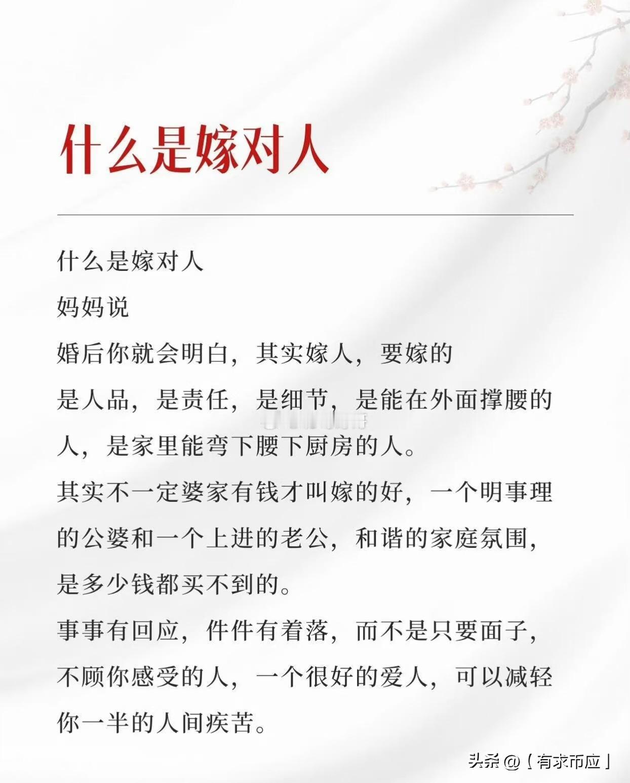 人品,婚姻的定海神针与安全底线,人品好的伴侣会在困难面前主动承担,而非推卸责任。心理学研究表明,责任感强的人在婚姻冲突中修复能力提升45%,能有效化解危机,情绪稳定的伴侣能在矛盾发生时保持理性沟通,避免因冲动情绪引发不可挽回的伤害。神经科学实验显示,伴侣展现责任心时,对方大脑奖赏中枢激活强度超收到红包147%。诚信正直是建立信任的前提,80%的婚姻破裂源于信任危机,而信任危机的核心正是人品中的诚信缺失。 人品差的人,即使坐拥金山银山,也会将婚姻变成地狱,自私、暴躁、缺乏责任感的性格,会让任何物质条件都失去意义。缺乏责任心的人,婚姻存续期平均缩短8年,且在失业、疾病等危机中出轨率高达73%,他们往往将伴侣视为"风险避风港而非共渡伙伴。 家境的多维价值,良好的家境能为婚姻提供初始安全感,减少因经济压力引发的摩擦。上海社科院追踪500对新婚夫妻发现,婚前储蓄达50万以上的家庭,产后抑郁发生率降低37%,家境不仅指物质财富,更深层的是家庭文化与教养,家庭背景带来的教育、医疗、人脉等资源,能为婚姻提供缓冲空间,使伴侣在危机中拥有更多选择权。家境优渥能减少生活琐碎矛盾,如不用为房贷、彩礼内耗,公婆通情达理,但家境差距过大,容易导致三观、消费观、原生家庭相处模式不合,家境的核心是观念共识而非财富数字。美国婚姻与家庭治疗协会研究表明,消费观、理财观差异引发的矛盾,占夫妻冲突总数的34%。健康的原生家庭,既能提供支持又懂得退场,这种边界感与支持力的平衡度直接影响婚姻质量。 人品为核,将善良、责任感、情绪稳定、尊重他人设为四条红线,任何一条不达标直接淘汰。不只看现有财富,更要看家庭风气,如父母是否明理、兄弟姐妹是否和睦。 家境安全线,达到当地人均可支配收入1.5倍(2025年一线城市为12.6万/年), 人品警戒线,责任力/抗压力/道德感任一维度低于40分, 当两项同时触发预警,婚姻破裂风险达91%。 最终嫁人,是嫁一种生活可能性,人品保证你不被背叛,家境保证你不被饿死,而两者的平衡点才是真正的幸福。最稳妥的选择是,人品过关+ 家境不拖累+ 个人能力可期。记住,家境决定了婚姻的起点,人品决定了婚姻的终点,而你的智慧决定了如何走完全程。