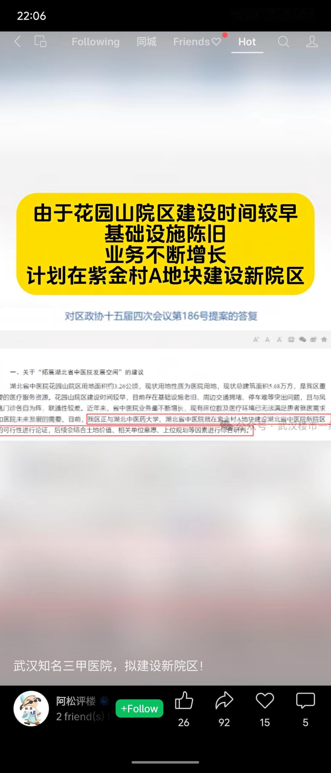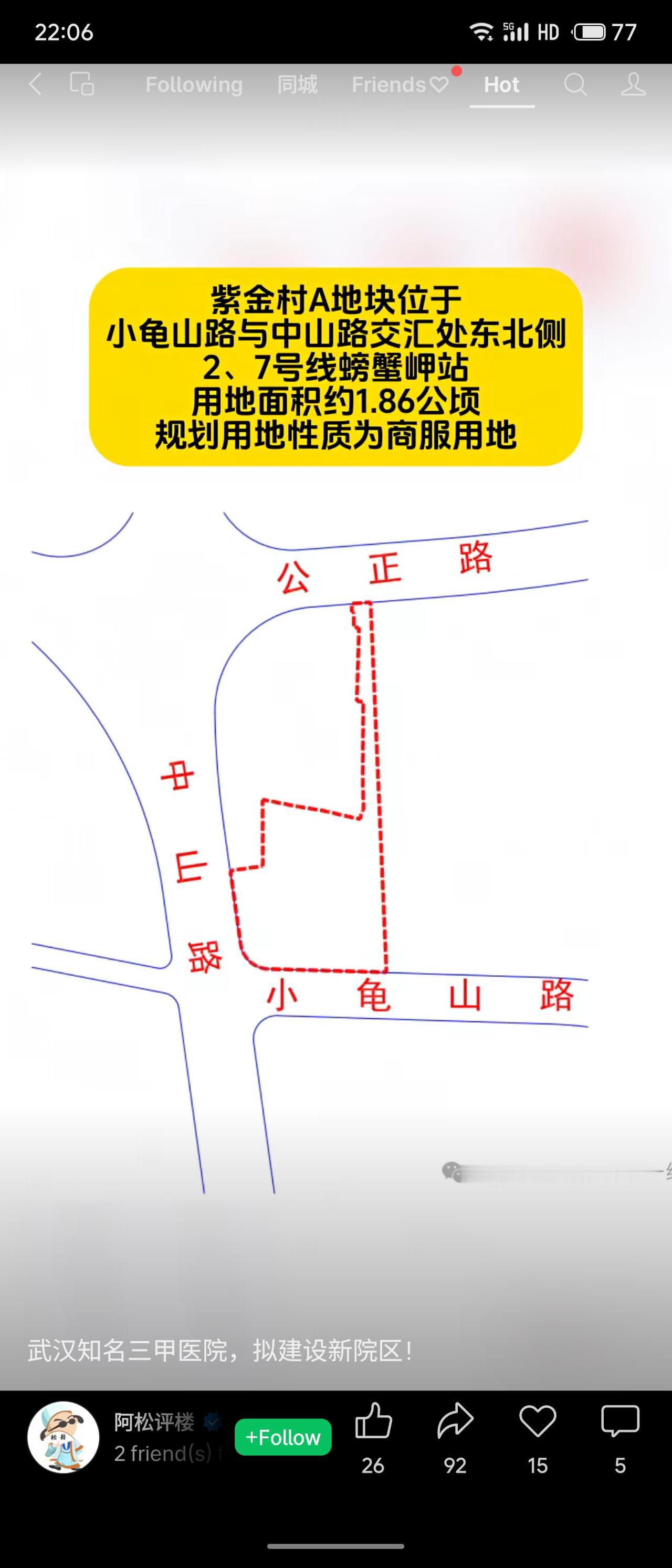 由于湖北省中医院花园山老院区基础设施陈旧且难以满足增长的业务需求,医院计划在紫金村A地块建设新院区。该项目目前正处于可行性研究论证阶段,该地块此前曾出让但开发商无力建设,相关手续正在处理中。