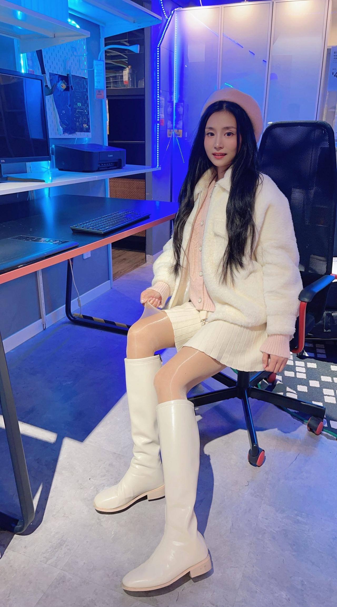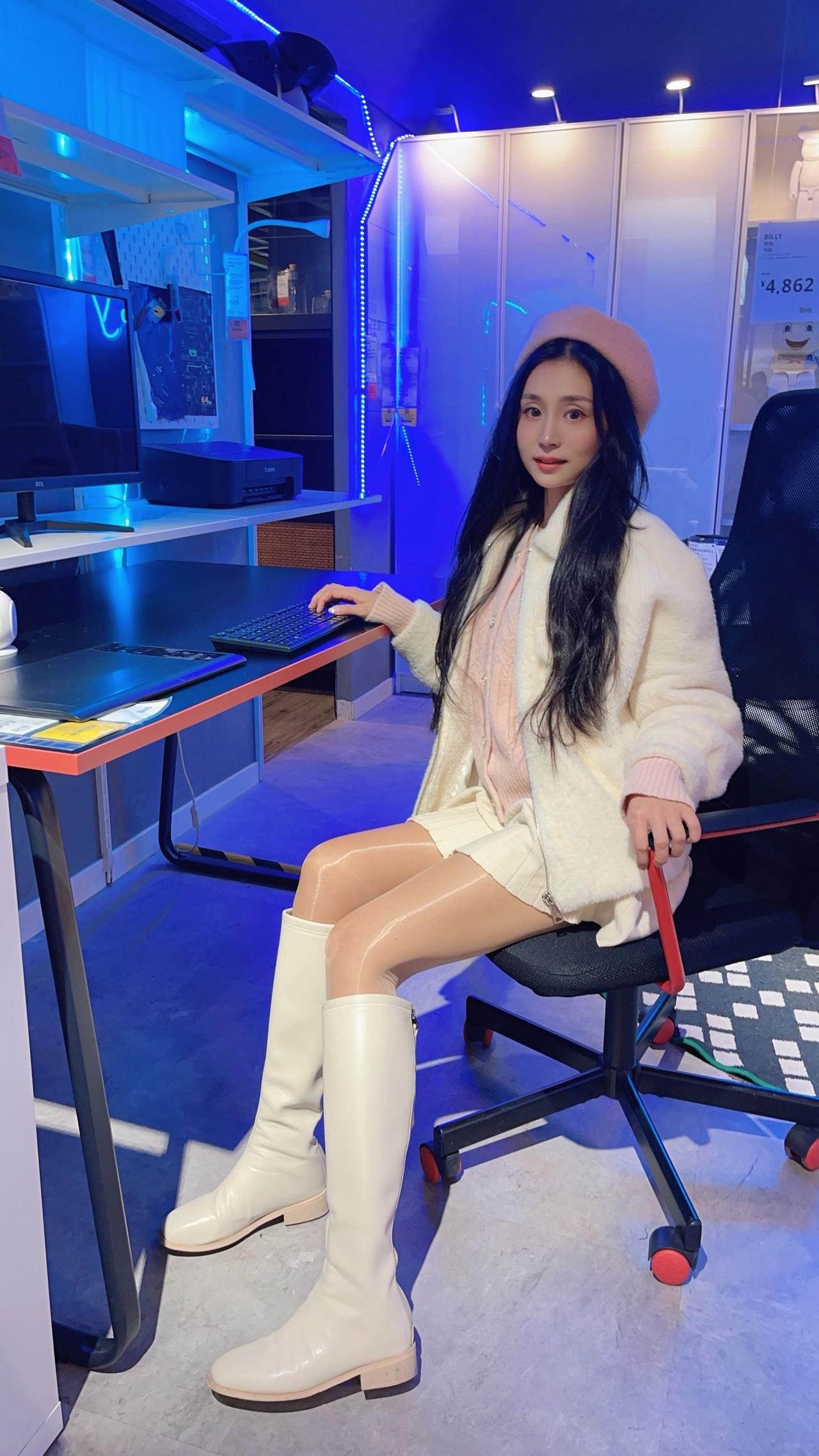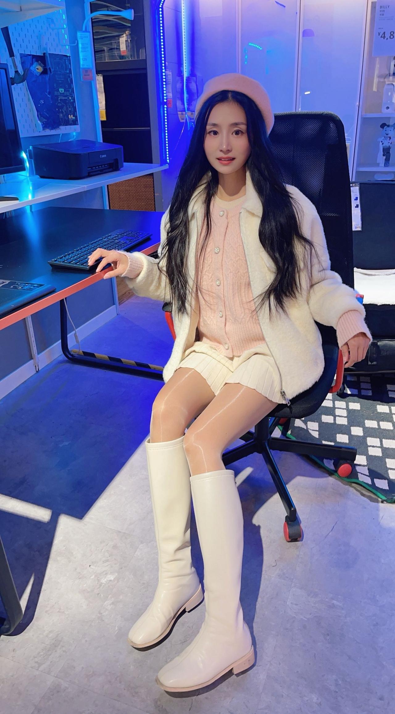 优雅气质,黑白蕾丝连衣裙,时尚高跟鞋,艺术氛围中的时尚少女。
