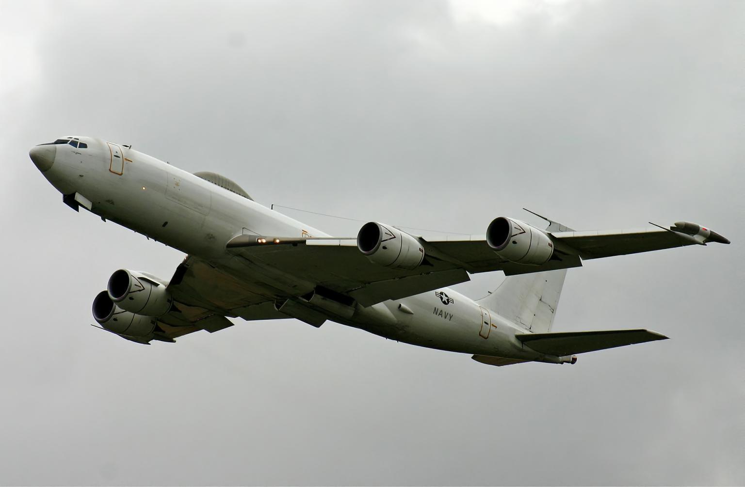 美国E-6“水星”通信中继机E-6是波音公司研制的一款通信中继机,绰号“水星”(Mercury)。E-6于1983年开始研制,1989年11月开始交付,1990年形成初期作战能力,一共生产了16架。该机在美国海军中服役,用于在战争情况下,确保国家指挥当局有效地与弹道导弹核潜艇、攻击核潜艇通信联络。E-6的机体有75%与E-3预警机相同,主要区别是去掉了旋转雷达天线罩,在翼尖有电子对抗吊舱。机舱分3个区,翼前区包括四人机组驾驶舱、食品储存间、厨房、就餐间、洗手间,以及有8个折叠床的休息间,以便搭乘轮班乘员。该机的收放式超低频天线长达7925米,在通信时,飞机绕小圆圈轨道飞行,天线近似垂直下垂,能保证潜艇在水下使用拖曳式天线接收。|
