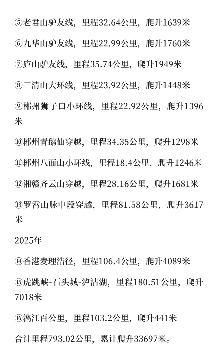 ⑦庐山驴友线,里程35.74公里,爬升1949米