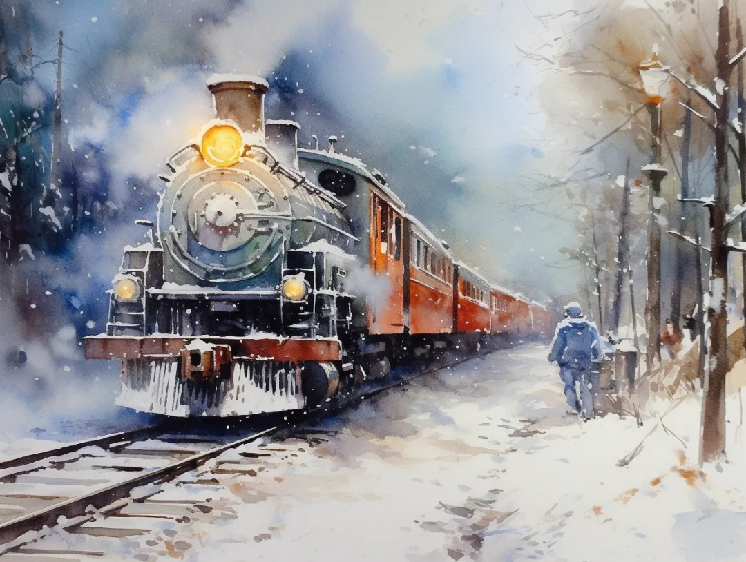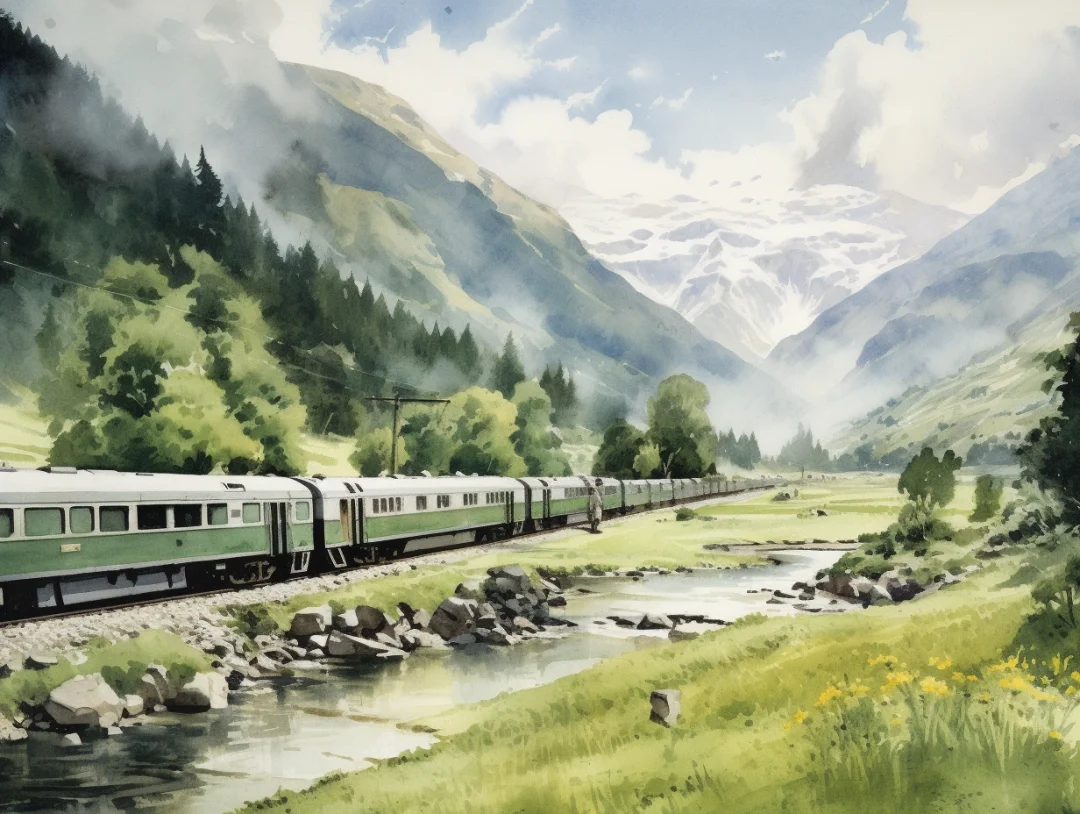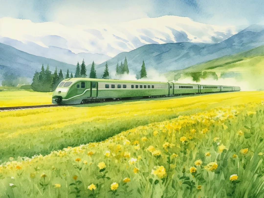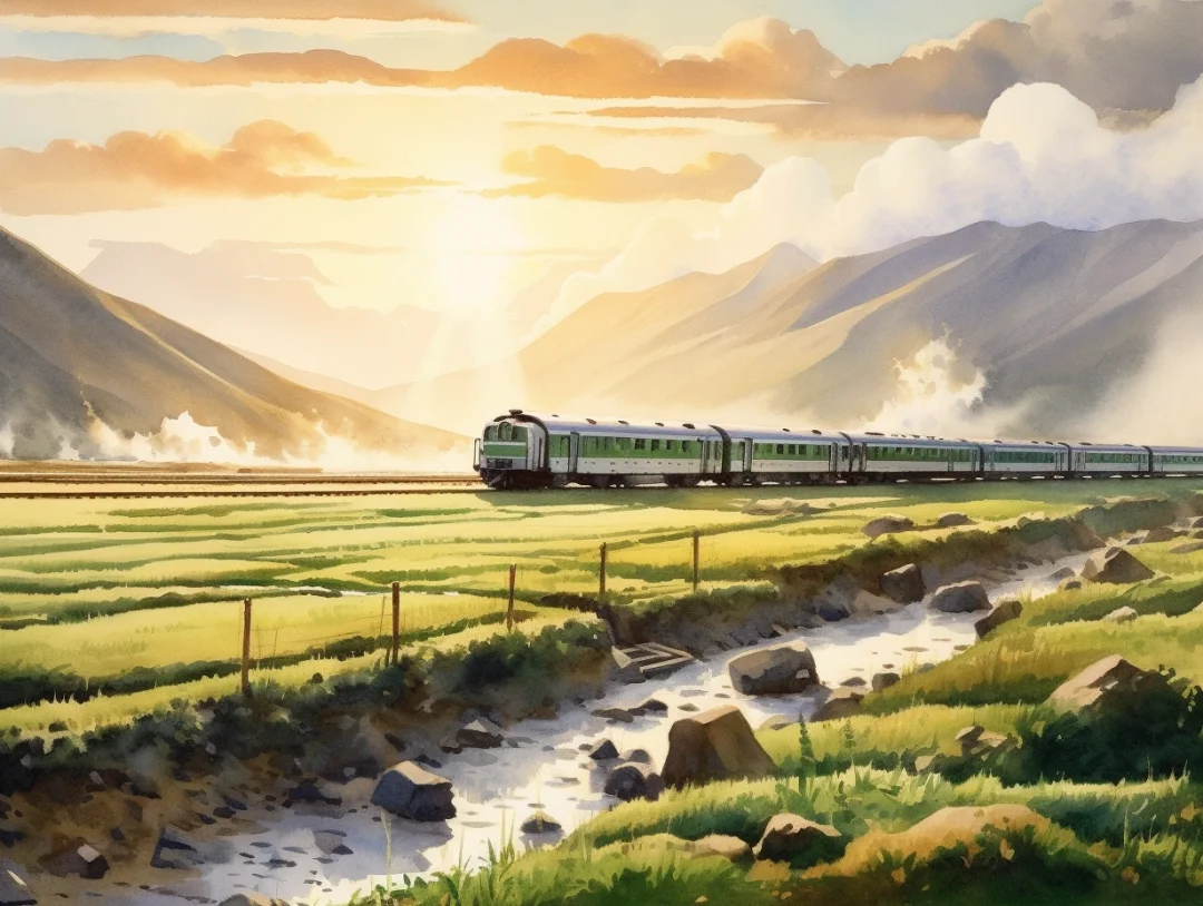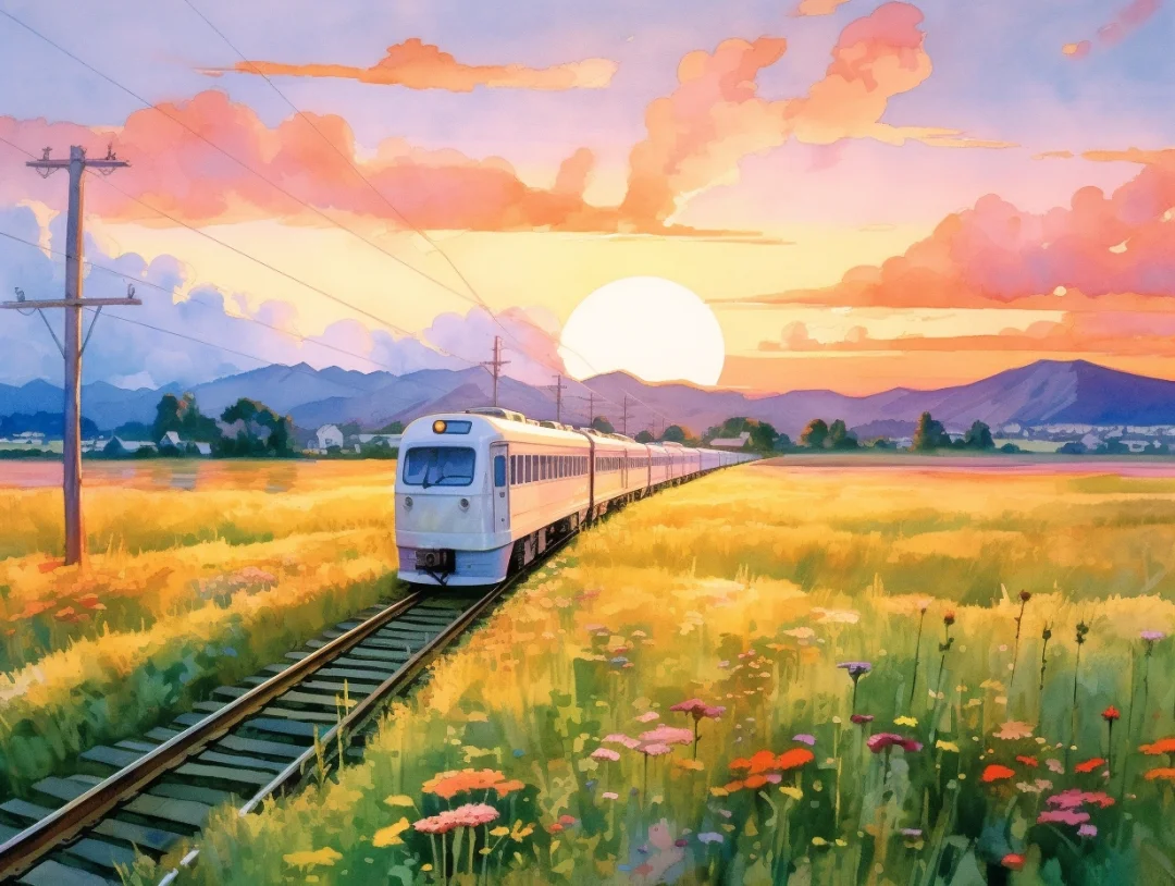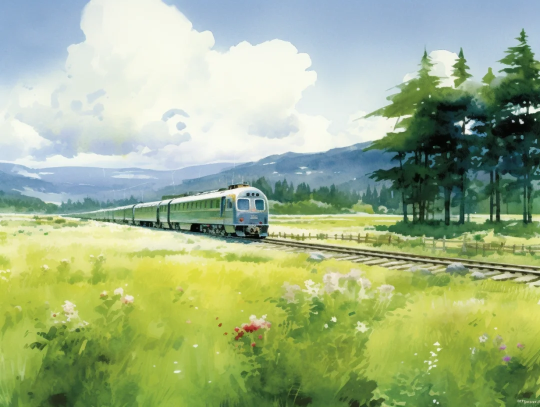 AI水彩:坐着火车去旅行