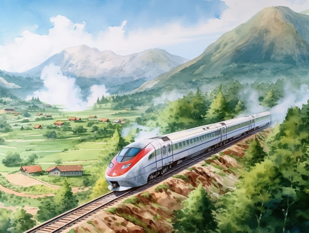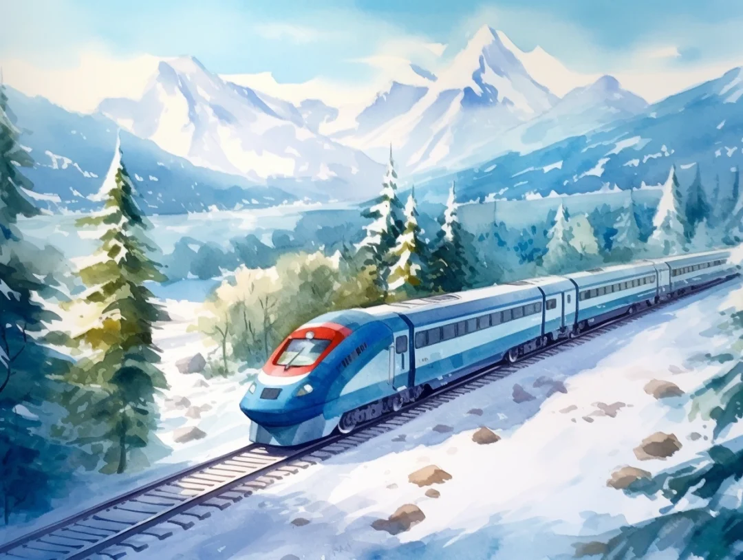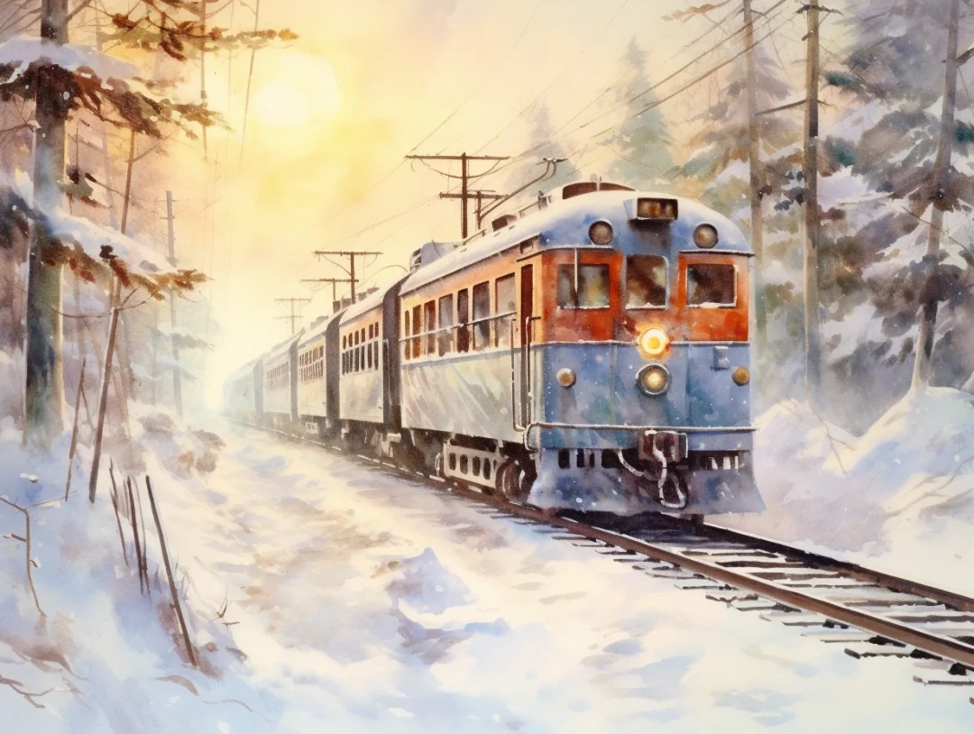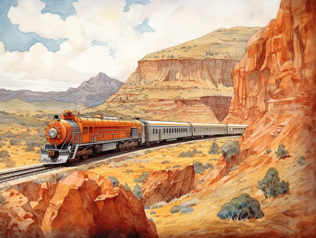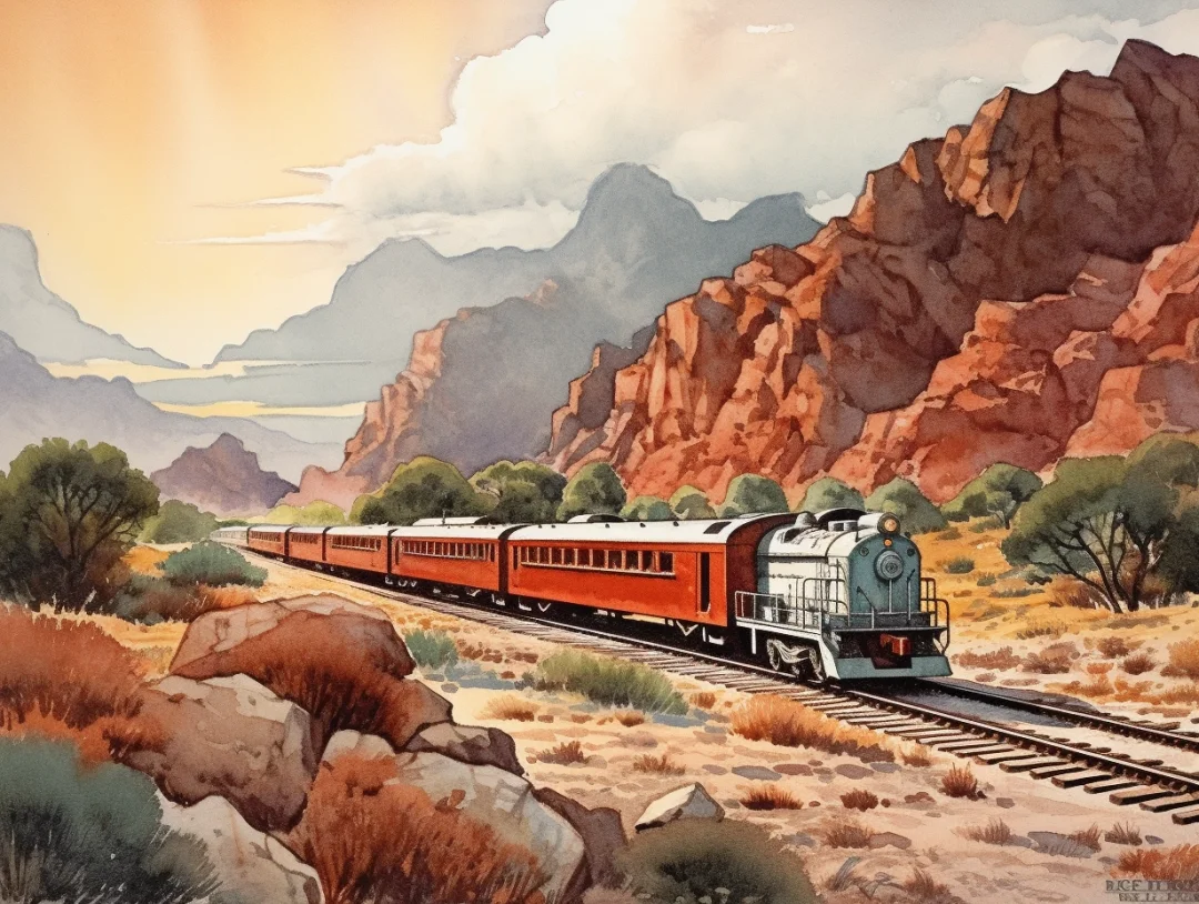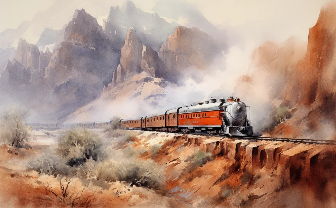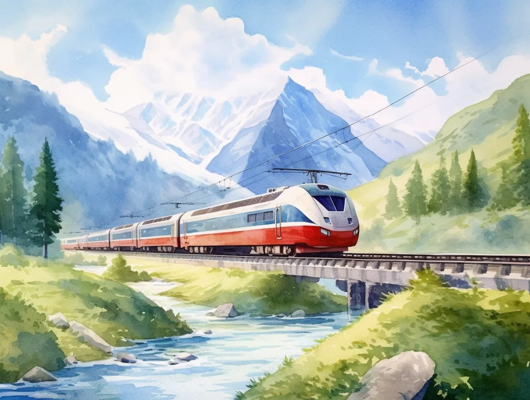 AI水彩:坐着火车去旅行