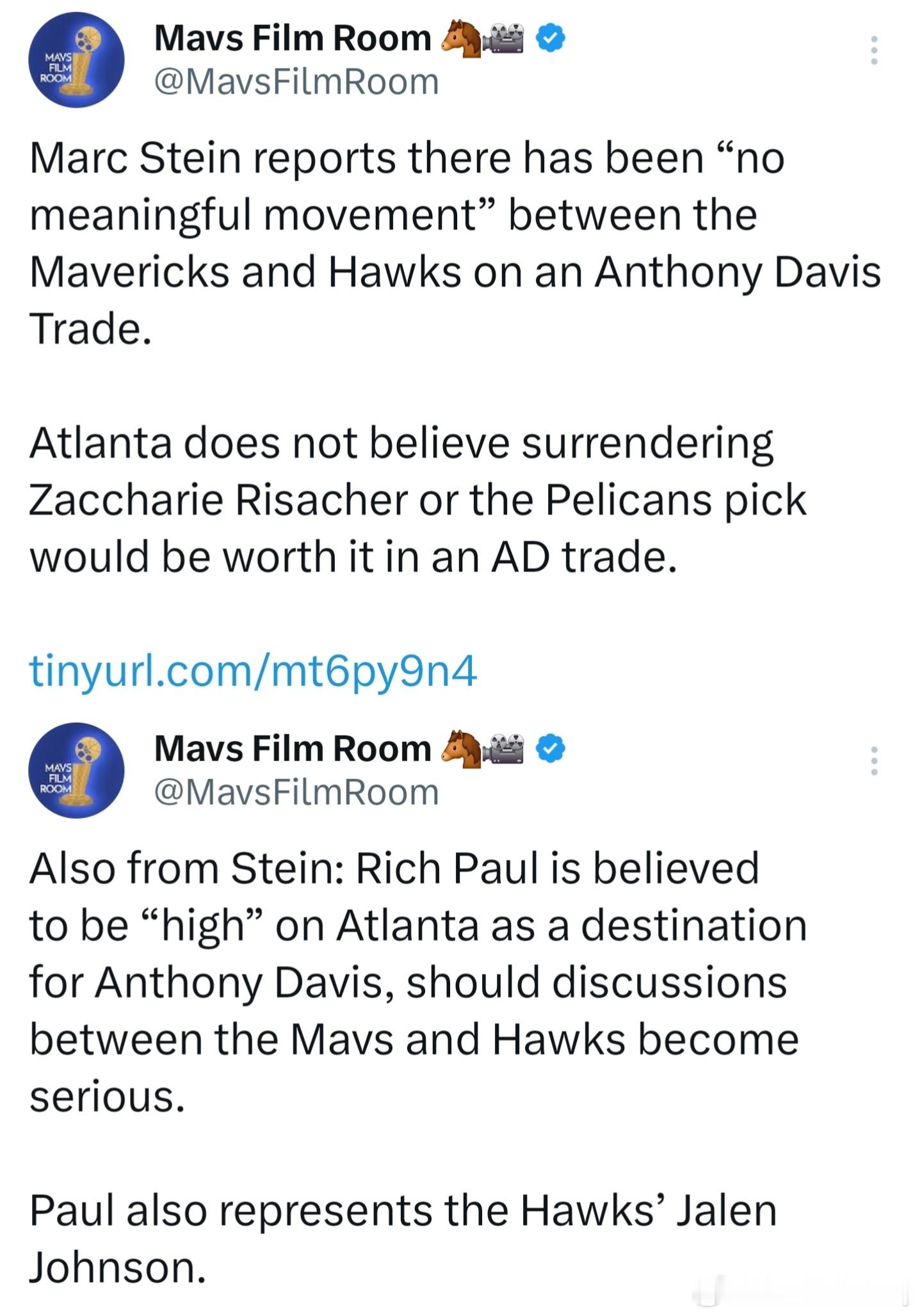Marc Stein:独行侠与老鹰关于浓眉的交易还没有任何实质性进展。老鹰认为,为了得到浓眉而交易掉来自鹈鹕的选秀权或者里萨谢并不值得。同时,里奇·保罗认为,如果老鹰和独行侠的谈判认真起来,他很看好老鹰会成为安东尼·戴维斯的潜在下家。