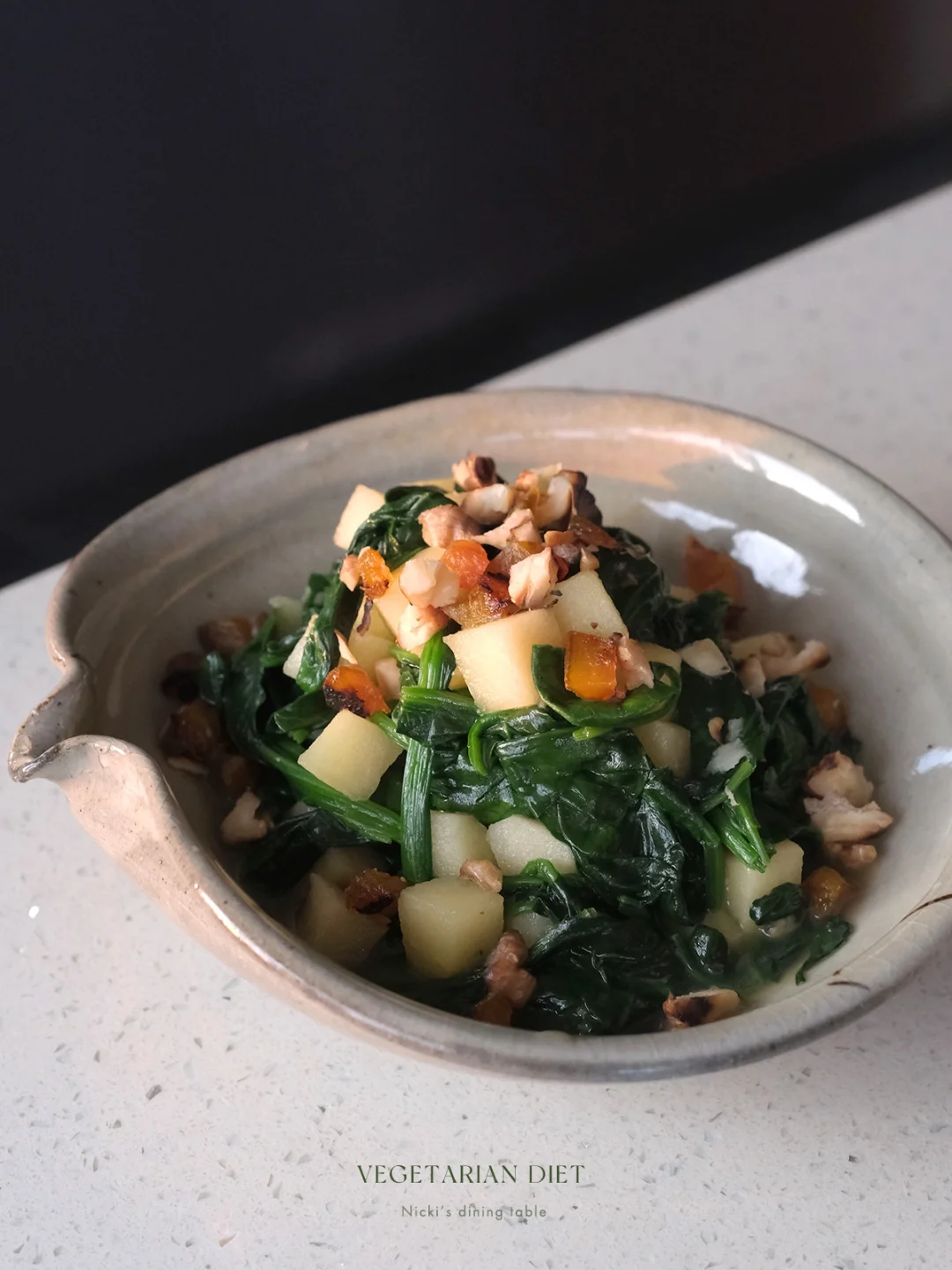 🥬食材:苹果、菠菜、核桃、杏干