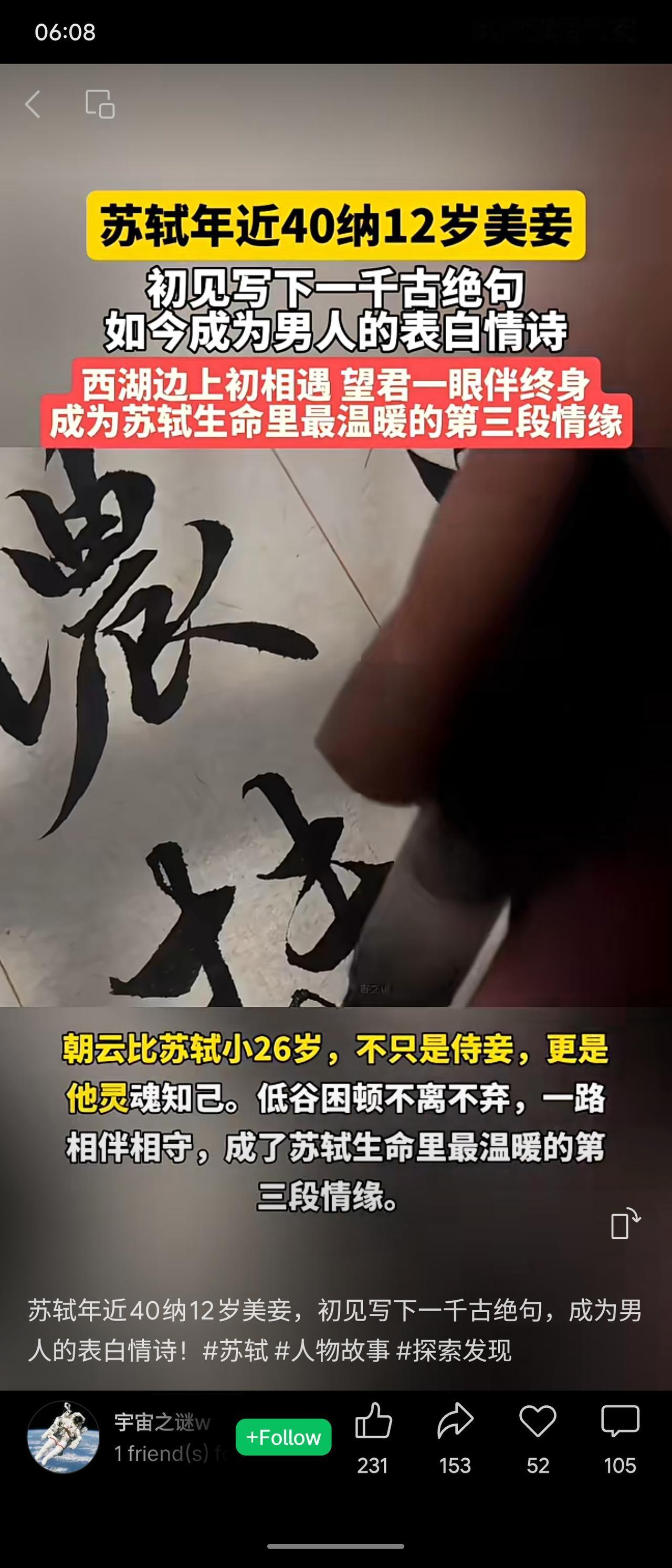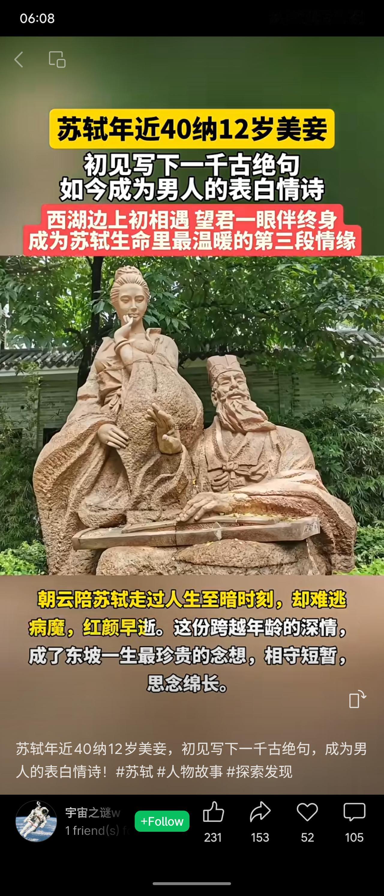 苏轼年近四十时,于西湖畔初遇十二岁的王朝云,纳其为妾。他为她写下流传千古的诗句,后成为经典表白情诗。王朝云不仅是伴侣,更是灵魂知己,陪伴苏轼度过人生低谷,却不幸早逝,留下绵长的思念。