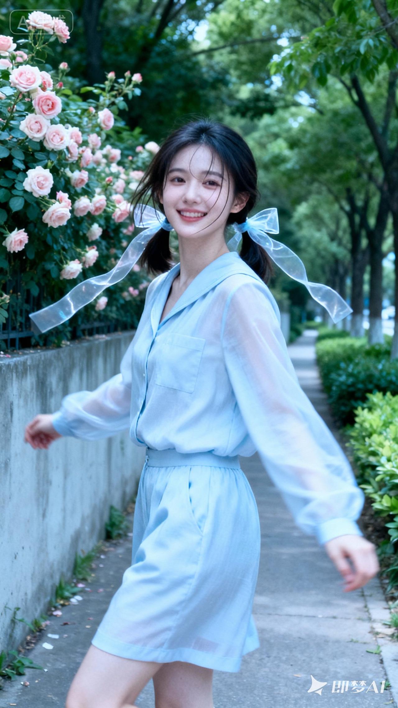 阳光明媚的午后,少女在绿意盎然的公园里开心地跑着。她就像一只自由的小鸟,在这充满生机的天地里尽情释放活力。 她扬起笑脸,每一步都带着欢快的节奏,身旁的绿树、鲜花都成了她的陪衬。这让我想起那句话:“看看你的身旁是崭崭的人儿,走走你的脚下是敞敞的门儿,憋足个嗨嗨的劲儿,扬起笑脸吼出个壮壮的声儿。”此刻的她,就是这般肆意洒脱,享受着这公园给予的快乐与自由,仿佛整个世界都属于她。
