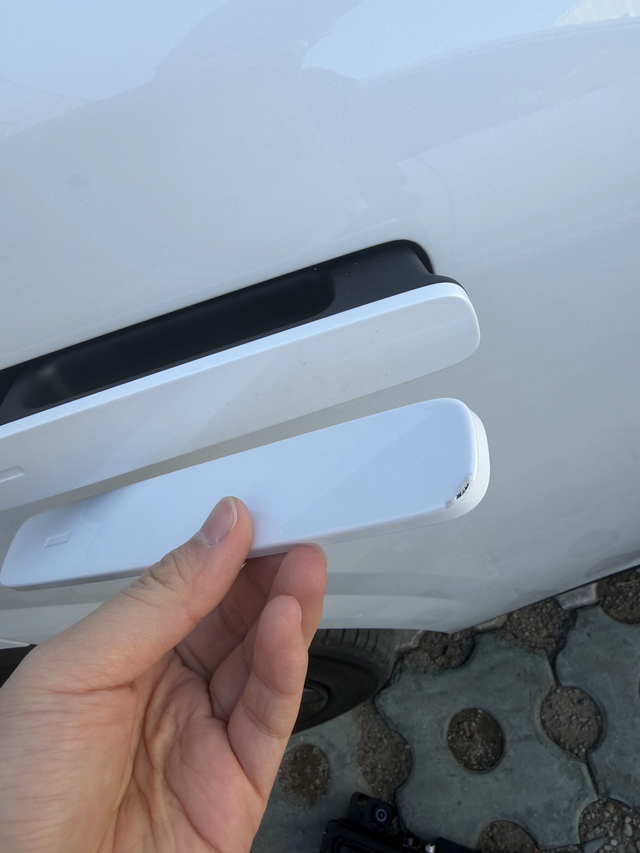 i6门把手断了 理想i6门把手断了 新提车两个月,地库起步右转,没注意右侧柱子,只听到咯嘣一声,我以为车门刮了,看了下是突出的门把手撞断了。 来售后订了件,安装完总计732,配件300多,工时费300多,是直接更换总成的。售后师傅很棒,管了一顿午饭,还主动给充了会电。 另外大家注意,车速低于10是不会收回门把手的,可以自己设置挂D档自动收回