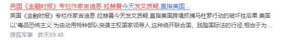 马杜罗被美国绑架,英国媒体人抛出一个让欧洲西方人“惊叹”的观点,英国《金融时报》首席外交事务专栏作家吉迪恩·拉赫曼提出质疑。 《纽约时报》《新华网》等多家媒体都报道了,美军这次绑架行动代号叫“绝对决心”,之前花了好几个月精心策划准备。 从2025年8月开始,美国中央情报局就往委内瑞拉派了人,用隐形无人机侦察、安插内线等办法,把马杜罗的行踪、住处、出行规律,甚至爱吃什么、养什么宠物都摸得一清二楚,就为行动铺路。 2026年1月3日凌晨,大概150架美军军机从20个不同的军事基地和海上平台起飞,一起行动。他们先把委内瑞拉的防空系统毁了,接着陆军“三角洲”特种部队趁着夜色突袭马杜罗的住所。 行动中,美军遇到了一点抵抗,一架直升机被打下来,6名士兵受伤。马杜罗夫妇想躲进安全屋没成功,最后还是被控制住了。当天凌晨,马杜罗和家人就被转移到美军“硫磺岛”号两栖攻击舰上,之后又被押送到美国纽约的斯图尔特空军国民警卫队基地。 更让人震惊的是,美国总统特朗普公开说,他和政府核心成员在海湖庄园全程实时看着行动,还把这事儿比作“一场电视节目”,直言行动“天衣无缝”。 美国这种单边行动,遭到了联合国、俄罗斯、古巴等大多数国家和国际组织的强烈谴责。联合国秘书长古特雷斯明确表示,美国这么做开了个危险的头,严重破坏了国际秩序。 俄罗斯也批评美国,说它是“基于规则的国际秩序”的公然破坏者。但与此同时,少数西方国家却想帮美国说话,意大利总理梅洛尼甚至歪曲事实,把这次侵略说成是“合法的防御”,还声称这是对“混合安全威胁”的回应。 这种说法明显不符合《联合国宪章》里对“正当防卫”的明确定义,委内瑞拉从来没对美国发动过任何武装攻击,美国的指控只是自己单方面的说法,没有任何实质证据。就算真有争议,那也是刑事范畴的事,绝对不能成为动用军事力量入侵他国、绑架他国元首的理由。 就在国际社会一边谴责、一边有人帮美国辩护的时候,英国《金融时报》首席外交事务专栏作家吉迪恩·拉赫曼写了一篇评论文章。他在文章里抛出一个观点,让欧洲的西方人都觉得很“惊叹”,这个观点还直接戳中了西方外交说辞的要害。 拉赫曼在文中毫不避讳地提出疑问:“那么,当中方发起特别行动逮捕伪台岛赖省长,或者俄罗斯想对泽连斯基采取同样行动时,我们到底该怎么表态呢?” 这番话一出来,很快就在西方舆论场掀起轩然大波,成了大家热议的焦点。 要注意的是,拉赫曼既不亲俄也不亲华。相反,他是西方主流媒体里很有影响力的资深评论员,一直关注国际外交事务,之前还多次批评过中国和俄罗斯的相关政策,他的观点平时也被当成西方外交叙事的重要声音。 正因为这样,他这次的质疑才更有冲击力,也更让人信服。这不是外部势力故意攻击,而是西方内部自己的反思,刚好戳中了西方外交叙事里最脆弱、最自相矛盾的核心逻辑。 长期以来,以美国为首的西方国家总把“基于规则的国际秩序”挂在嘴边,还把自己打造成国际规则的“捍卫者”。他们动不动就拿“违反国际法”“侵犯人权”当理由,对其他国家指手画脚,还实施制裁。 比如之前国际刑事法院对俄罗斯总统普京发出逮捕令的时候,很多西方国家都表示支持,说这是“维护国际正义”。 可当美国在伊拉克、阿富汗发动侵略战争,造成大量平民死亡受伤,国际社会呼吁追究美国责任的时候,西方却集体沉默了。美国甚至直接说国际刑事法院对它没有司法管辖权,还威胁要制裁这个法院的相关人员。 拉赫曼的质疑刚好点破了这种双重标准的荒唐。美国这次绑架马杜罗,本质上就是靠军事霸权欺负人,粗暴践踏他国主权,是典型的“弱肉强食”,完全违背了西方自己提倡的“国家主权平等”“不干涉他国内政”这些国际规则。 可大多数西方国家要么沉默,要么帮着找借口,这和他们平时对其他国家的苛刻评判完全不一样。拉赫曼提出的假设,就是把这种双重标准摆到了明面上。 如果按照美国这次的逻辑,大国可以随便拿“潜在威胁”或者自己单方面的指控当理由,跨境抓捕其他国家的元首,那当中方针对分裂势力采取行动,或者俄罗斯对乌克兰相关人员采取类似措施时,西方该怎么自圆其说?是继续喊着“规则至上”去谴责,还是承认自己的标准是挑着用的,进而否定自己? 其实拉赫曼的质疑不是没根据的。历史上,美国就多次靠霸权推翻或者抓捕其他国家的领导人。1989年入侵巴拿马抓捕诺列加,2001年胁迫塞尔维亚政府引渡米洛舍维奇,后来又推翻伊拉克萨达姆政权,每一次都无视国际法,侵犯他国主权。 而西方对这些事,要么默许,要么直接支持。可一旦其他国家的行为不符合西方利益,哪怕是为了维护自身安全和主权完整的合理行动,也会被西方扣上“破坏国际秩序”的帽子。这种“只许州官放火,不许百姓点灯”的外交逻辑,就是西方叙事最大的漏洞。